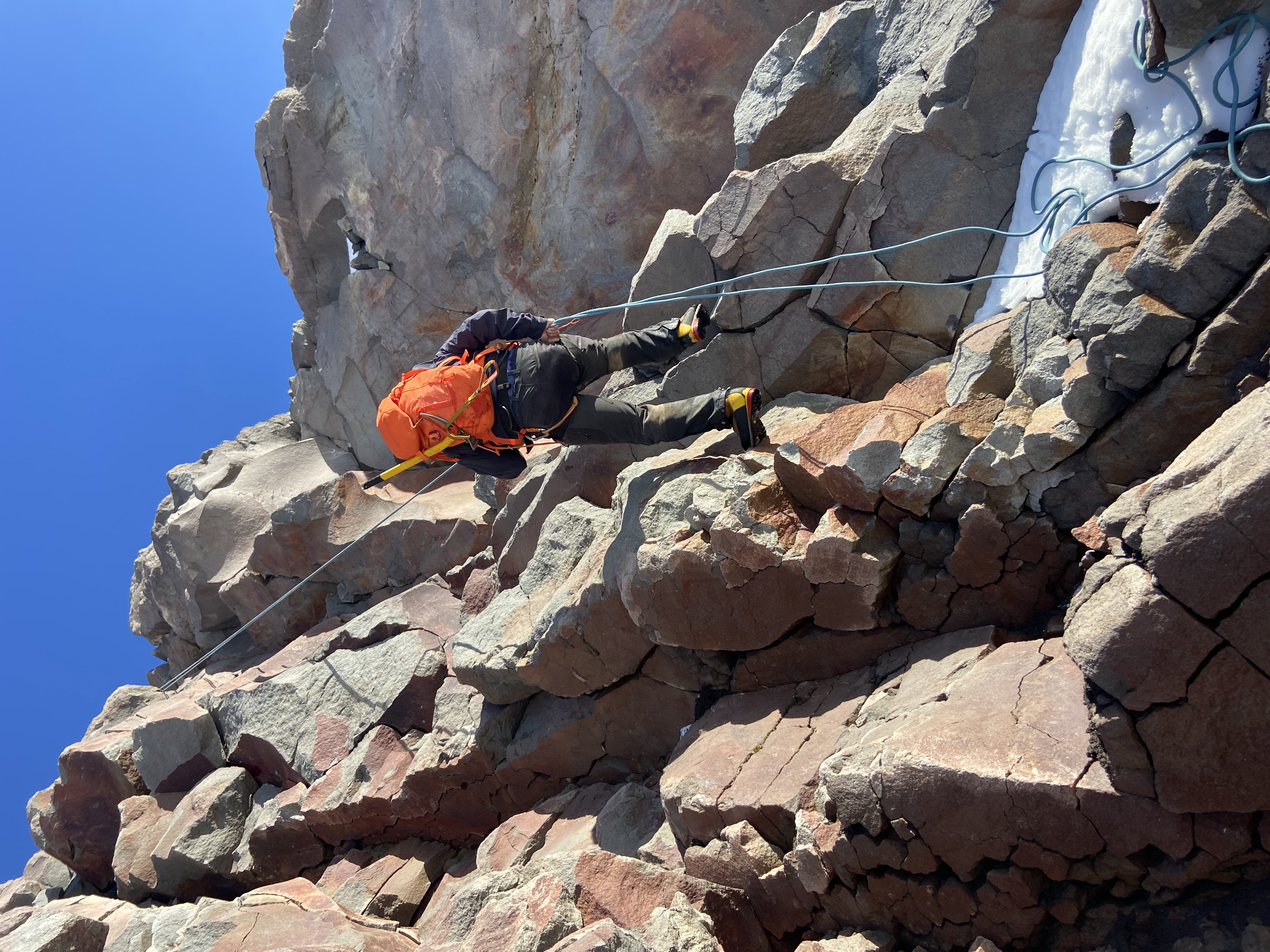 Descenso en rappel de banda de roca