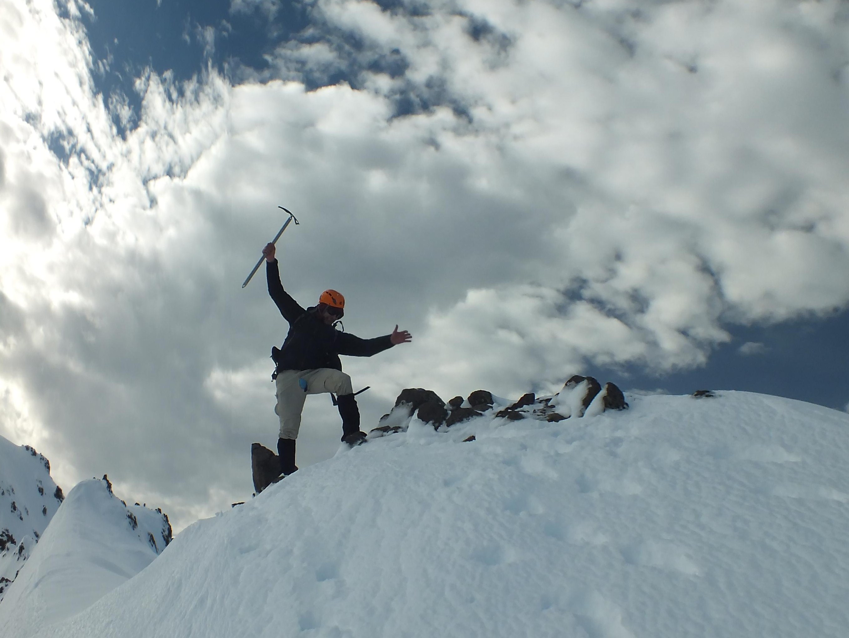 Nieve desde el inicio del sendero en la laguna pequeña del escorial. Día de cumbre viento sur en la madrugada. Crampones desde el camp saliendo del bosque. Ruta con bastante nieve para época y poca caída de material. Cumbre 1pm.