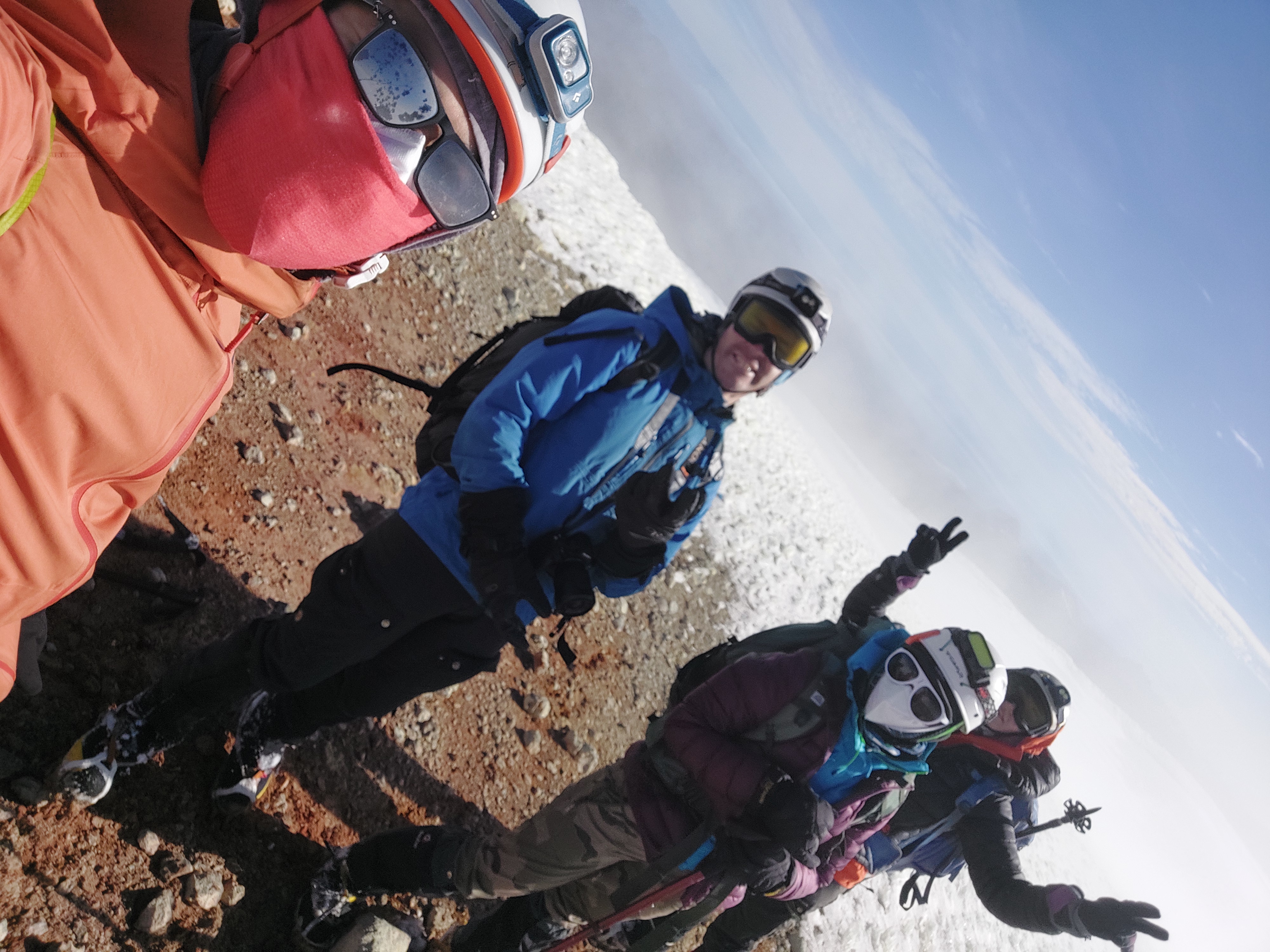 En nuestro día de ataque de cumbre erramos de ruta y regresamos al CB. Junto a Tatiana González, Lourdes Miranda, Cinthya Castro y Cristian Irribarra partimos en nuestro segundo intento y con la ruta clara, pero con un clima amenazante, a intentar que el blanquito nos dejará llegar a su cumbre, comenzamos caminando a las 5 de la mañana, pasado el medio día llegamos todos a su cumbre y fue hermoso, me emocioné al mirar el fascinante paisaje y abracé a mi amigo Cristian, luego de eso nos abrazamos todos, habia un viento heavy que se nos helaron las manos al momento de sacarnos fotos y dejar registro del lugar... en el verano con Cristian habíamos visitado al vecino Vn Copahue y desde ahí comenzamos a planificar lo que sería visitar este hermoso y mistico lugar, resguardado por las comunicadesde locales, dejo este comentario por que no fue fácil accede