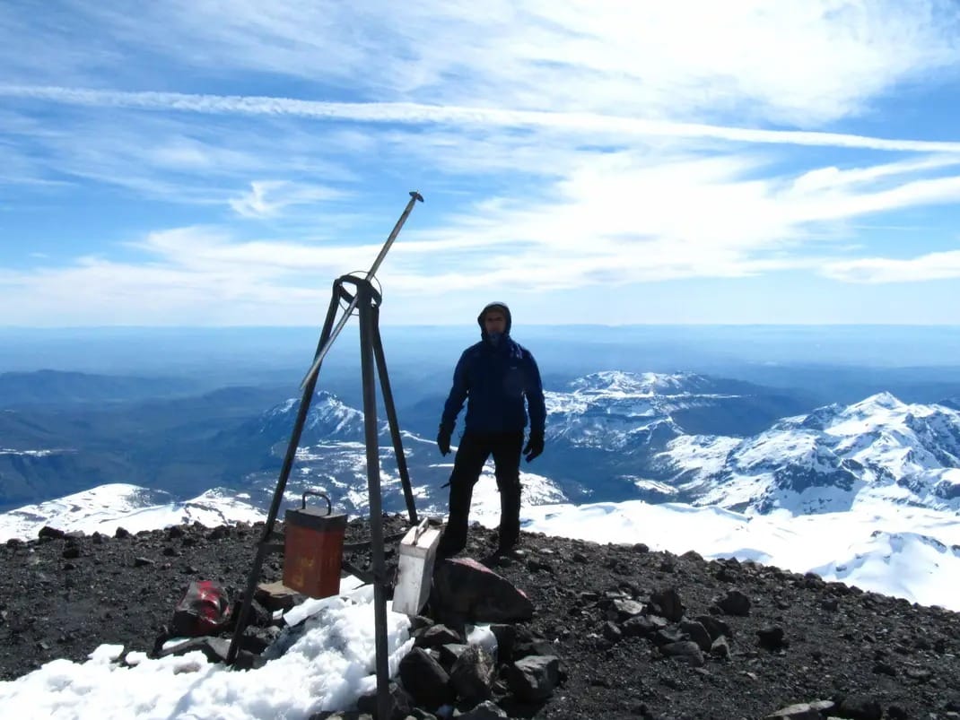 Día muy cálido , típico de cierre de temporada estival Ruta muy marcada desde shangrilá acampando en ruinas del refugio waldorf y saliendo al día siguiente a manifestar la cumbre ,acompañado en la cima de un gran número de cóndores y la majestuosidad del volcán chillan al sur entregándonos un espectáculo de pulsos , recordándonos la potestad de las fuerzas de la naturaleza . Cumbre a las 11:10 am y de vuelta en waldorf a las 16:40 a un paso calmo . Cordada los tetones .