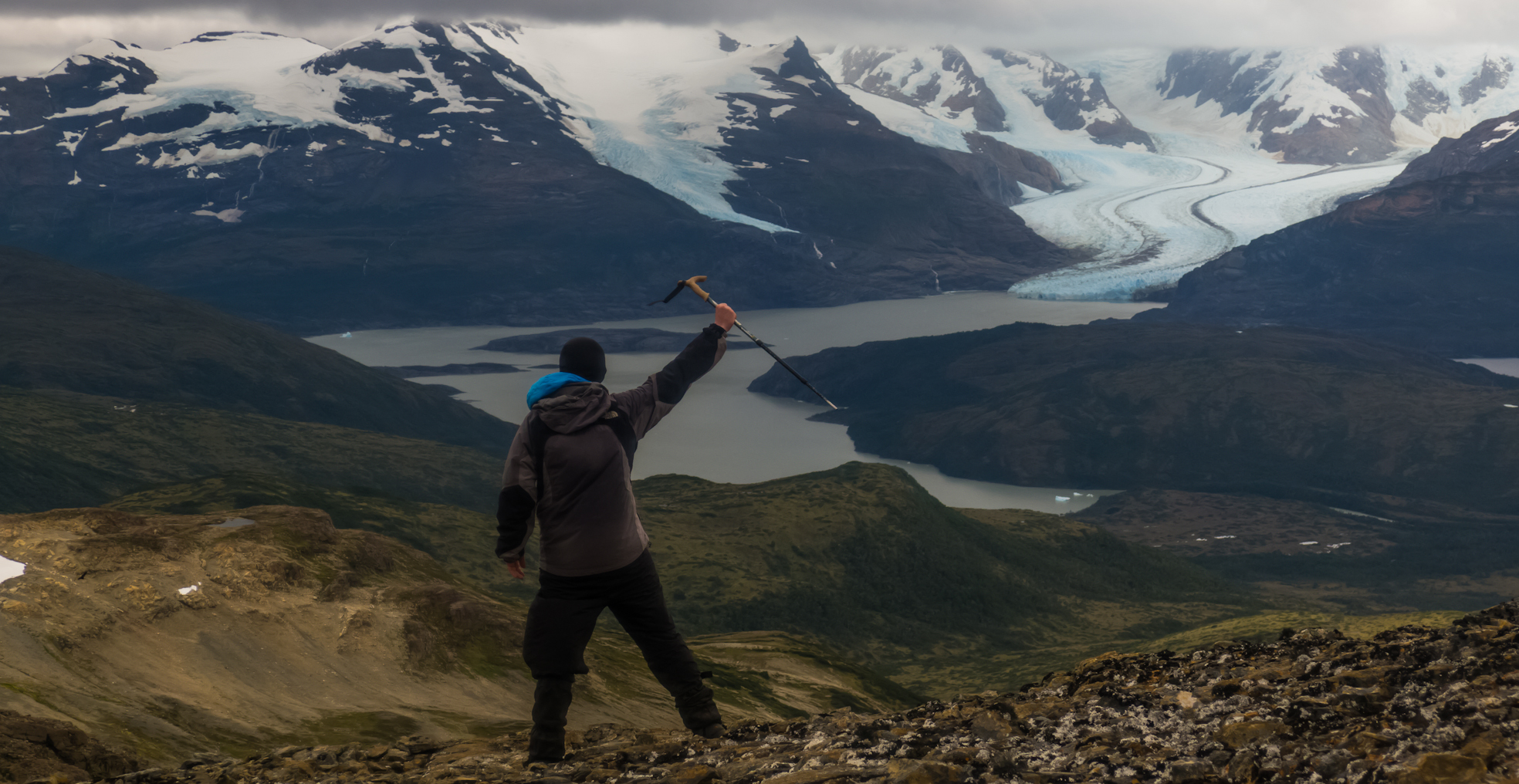 Panoramica del Lago y Glaciar Balmaceda Utilizando la casa de un antiguo colono de la zona como campo base parto en medio de densos bosques hacia el plateau del Monte Balmaceda para intentar una de las 5 cumbres mas altas de esta montaña la cual consigo en alrededor de 12 horas siendo el primer registro de ascensión en solitario.