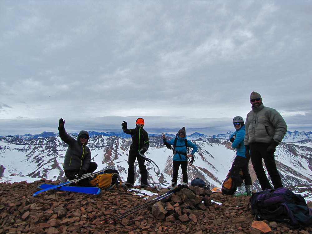 A pesar de que las condiciones de la nieve no eran las mejores, tuvimos un muy buen día con cumbre y descenso esquiando. Salida del DAV Santiago.