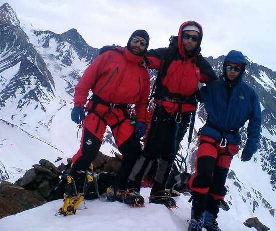 De izquierda a derecha: Marco Poblete, Paulo Vallejos y Miguel Pezo Un excelente ascenso, muy duro por las condicones de la nieve. Fueron 6 horas y 15 minutos a cumbre desde nuestro campamento a 2.650mts. Subimos por el canalon y bajamos por el glaciar, buen grupo.