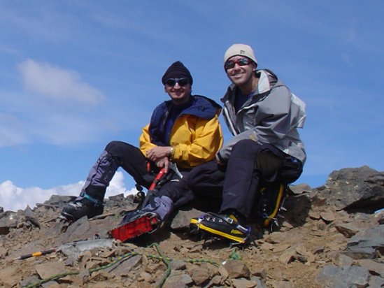 Epoca de verano que aun mantenía suficiente nieve para una buena aproximación y cumbre. Las grietas del glaciar aparecieron abiertas y un tanto peligrosas, con puentes de nieve algo dudosos. La cumbre fue muy soleada esperando a la cordada de Mauricio y Vero que venían más atrás. La bajada fue muy rápida dado que el Morado se estaba cerrando y comenzaba a nevar y llover, acompañado el resto del día de tormentas eléctricas.