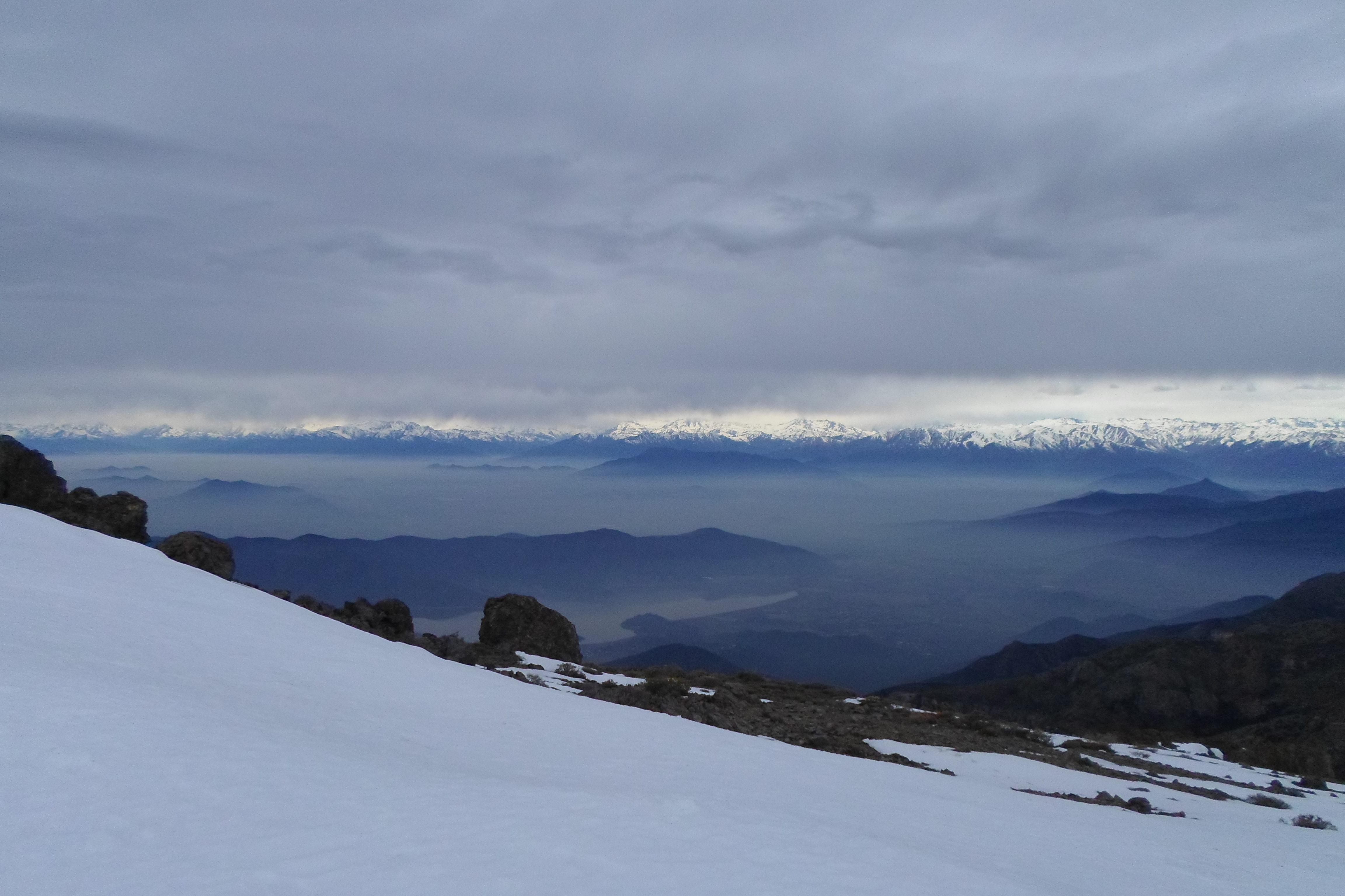 Vista desde la rivera noreste de la Laguna de Aculeo al Horcón de Piedra. 18-10-2015. PD: Las lluvias de Agosto de 2015 algo ayudaron a recuperar el nivel de agua de la laguna.