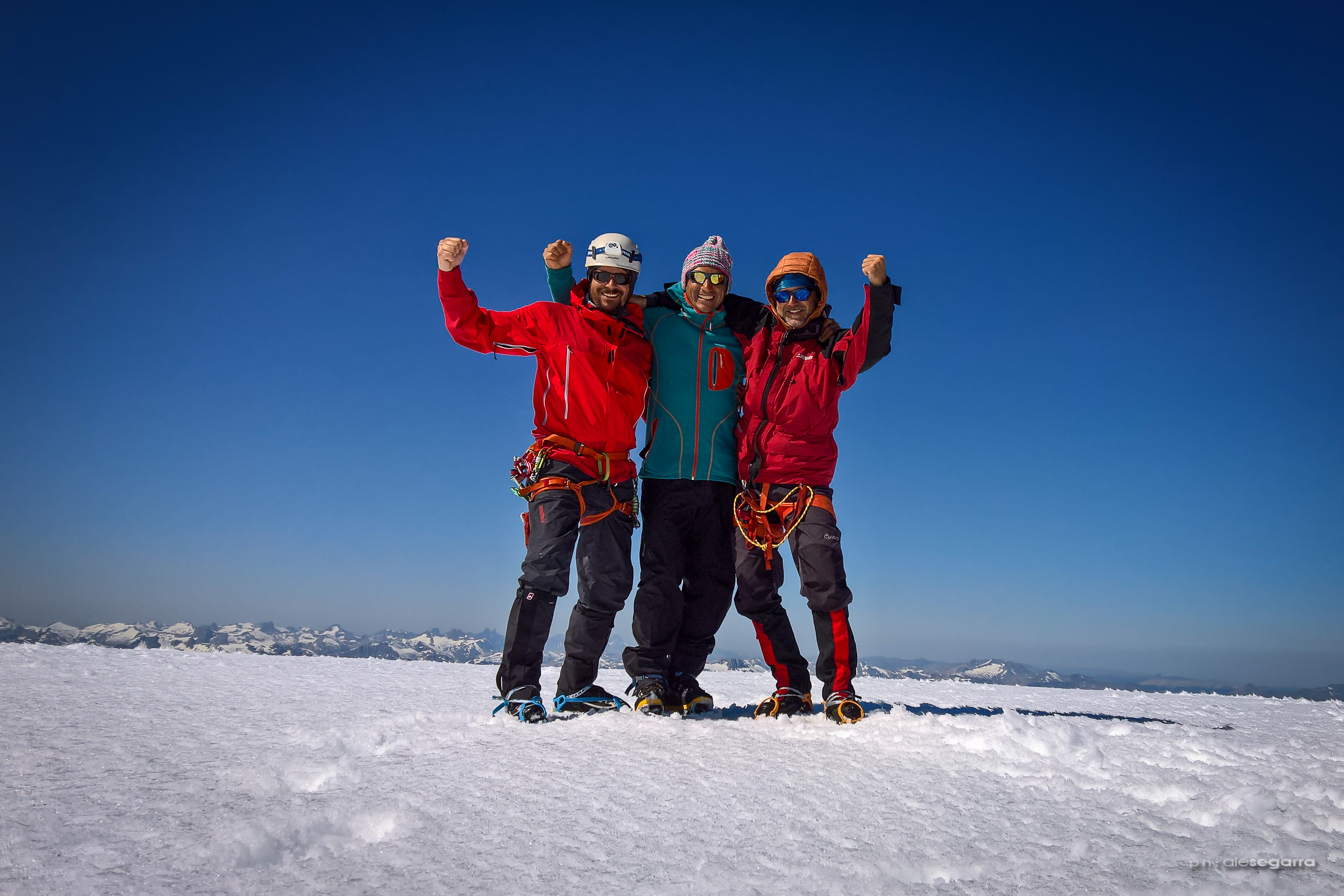 Dia de cumbre con clima perfecto atravesando varios kilómetros de complicada morrena glaciar para montarnos sobre el extenso campo de hielo que nos condujo hacia la cumbre luego de 7 horas y algunas maniobras entre grietas con un ultimo paso bien expuesto sobre el hongo de hielo.