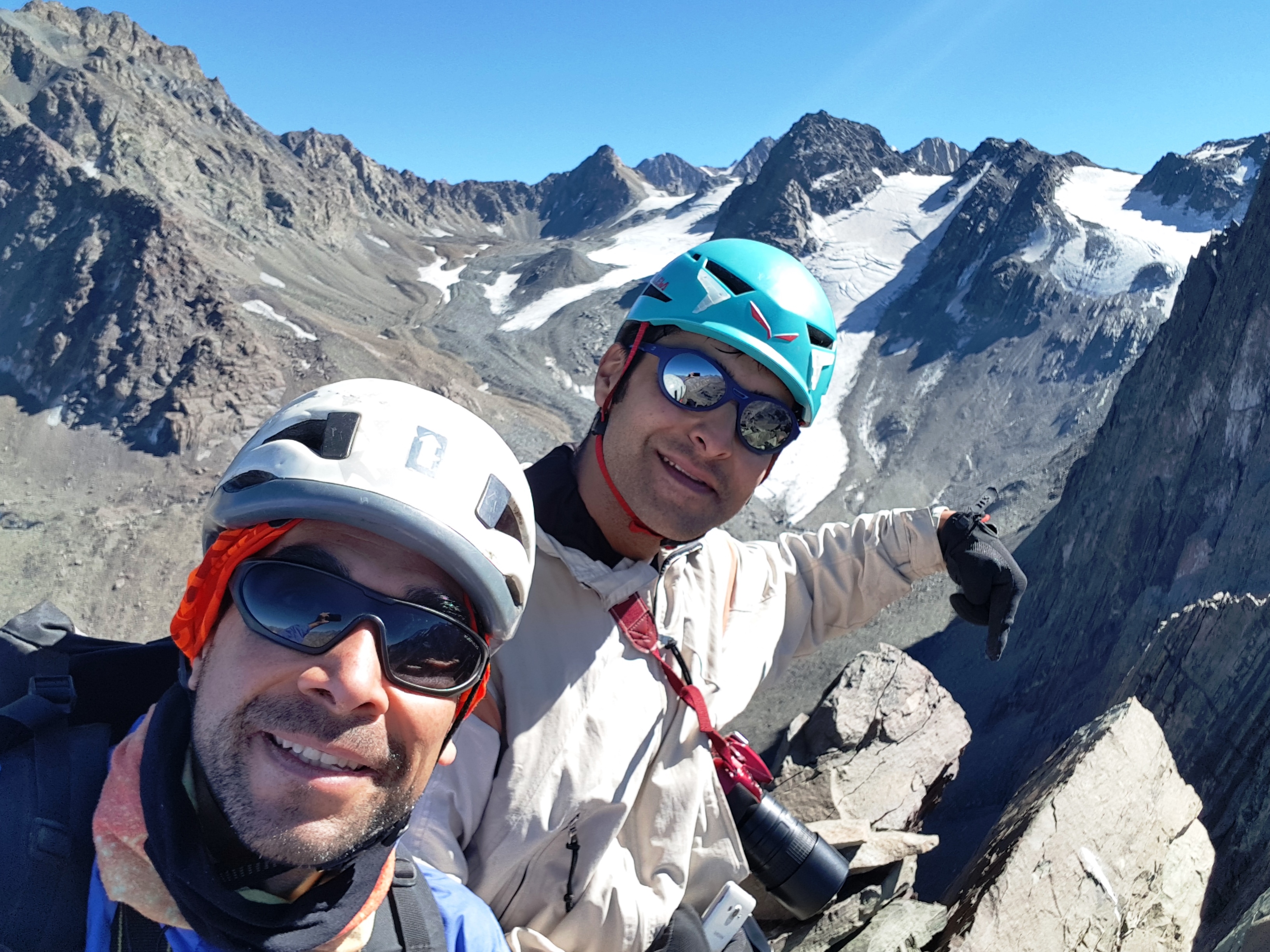 La ruta es expuesta si no escalas. Las graduaciones que aparecen en AHB son hechas por gente que escala con regularidad, por eso son bajas. Si escalas seguido, te parece un cerro fácil, pero si no te sientes seguro en la roca, el cerro es bastante expuesto. La noche anterior nevó, por lo que la ruta nos tocó bastante resbaladiza y desafiante. Se puede poner empotradores, pero la roca es tan mala, que es más rápido gatear y subirla rápido. Se puede rapelear, pero ojo con los anclajes, que el material está realmente suelto.