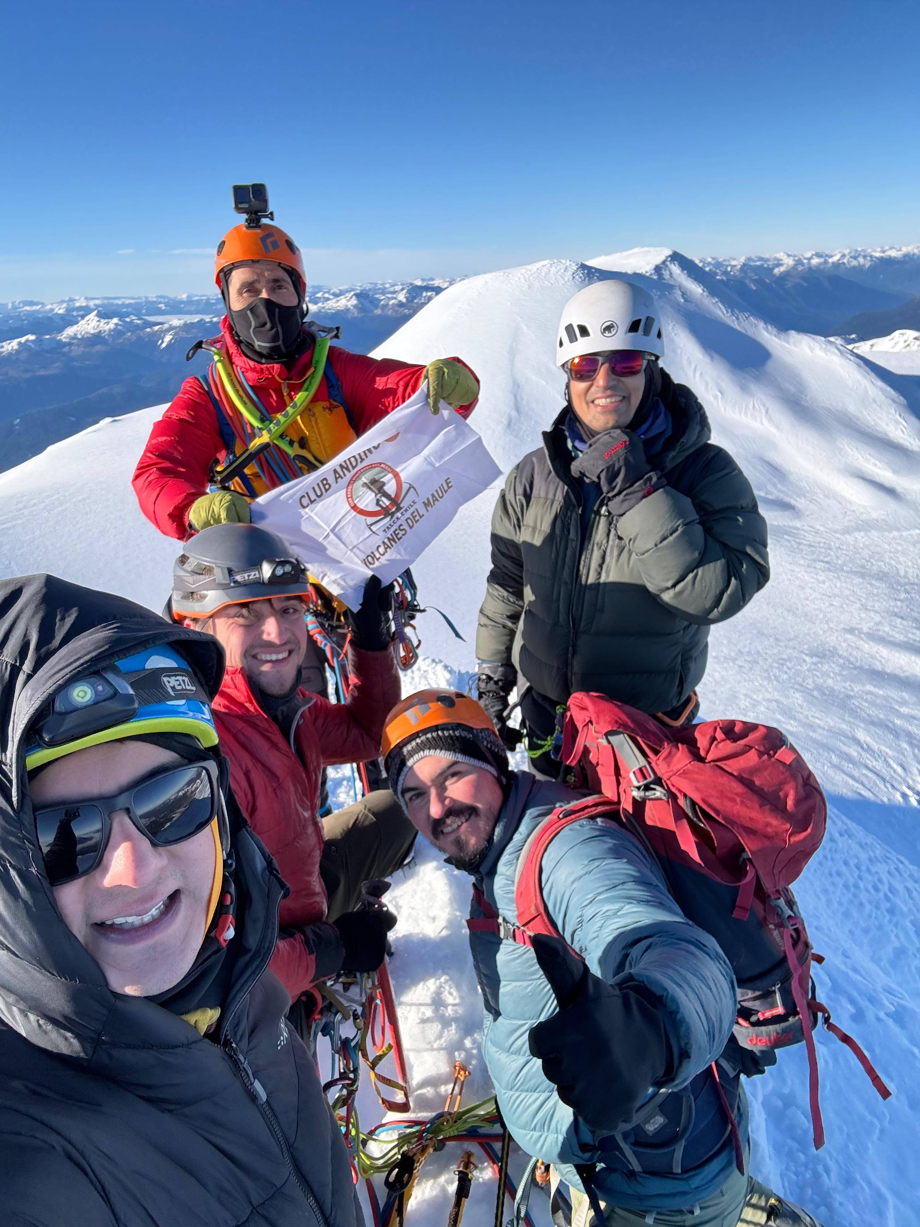 . Salimos a las 2 am desde el refugio que se encuentra en la entrada del parque. La nieve estaba bastante dura por lo que la progresión se hace rápida. Esperamos un rato a que amaneciera para tomar el filo cumbrero, logrando la cumbre a las 9 de la mañana.