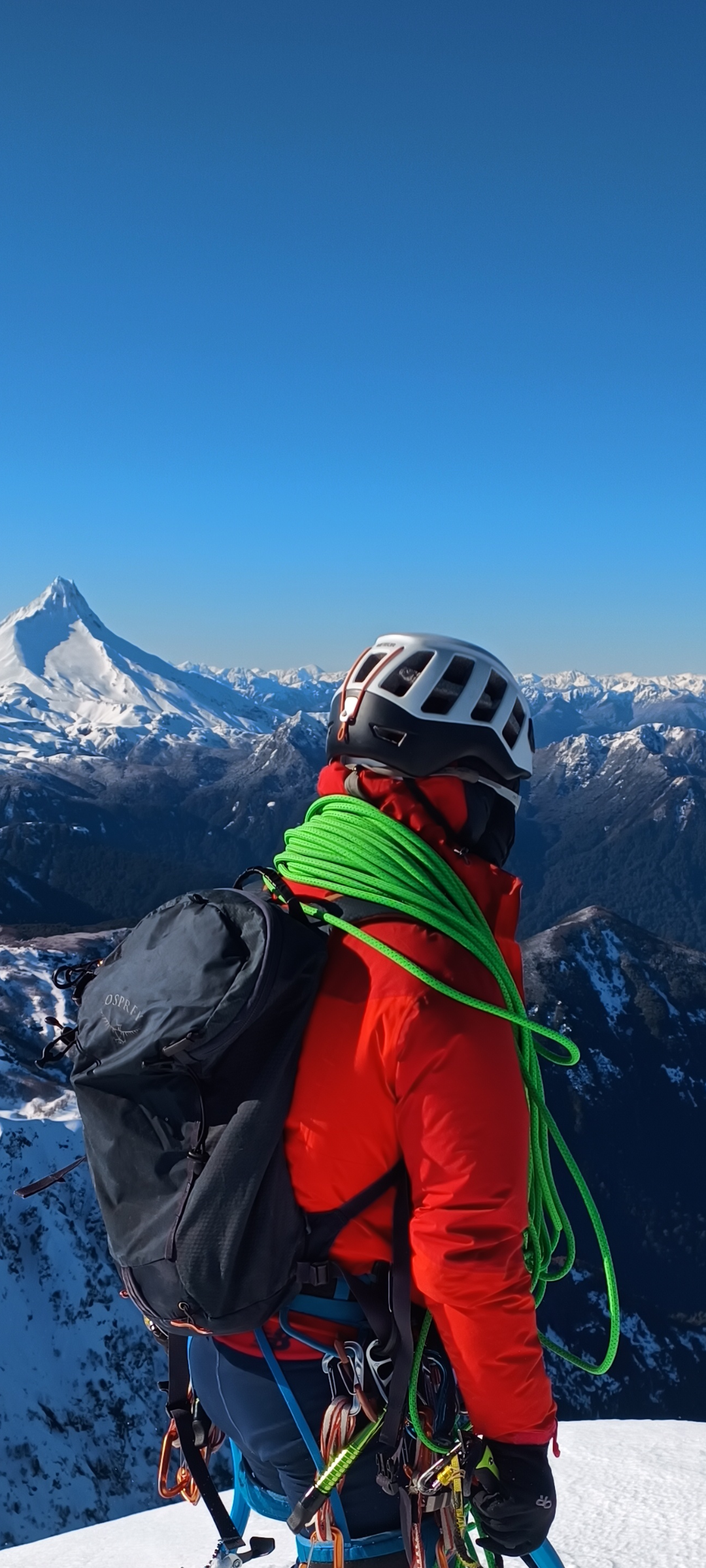 Muy linda cumbre Es la cuarta vez que lo escalo, pero está vez en vez de ir en solitario, fui con alguien que le encanta la montaña y tuve el honor de regalarte está hermosa cumbre con una vista extraordinaria, nos toco como cemento, y un poco desprolijo de hielo la última trepada antes del salto Crux, pero yo iba a muerte y solo Dios me iba a detener, logramos cumbre y volvimos a casa sin novedad