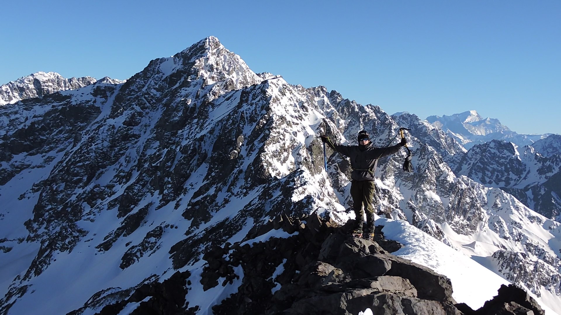 Partimos a las 2:30 am desde el auto. Nieve muy blanda, nos hizo dudar al llegar a la base de la canaleta pero probamos al inicio y ya no hubo vuelta atrás. La nieve estuvo blanda todo el trayecto, lo peor fue luego de salir del P2 pues la nieve estaba muy profunda y blanda, lo que exigió mucho esfuerzo para poder llegar hasta la cumbre que alcanzamos a las 13:50 hrs. Descenso por la ruta normal con nieve un poco mejor pero aún así blanda. P1 se hizo por roca y P2 no presentaba hielo, la mayor dificultad fue pelear con la nieve blanda. Bonita ruta