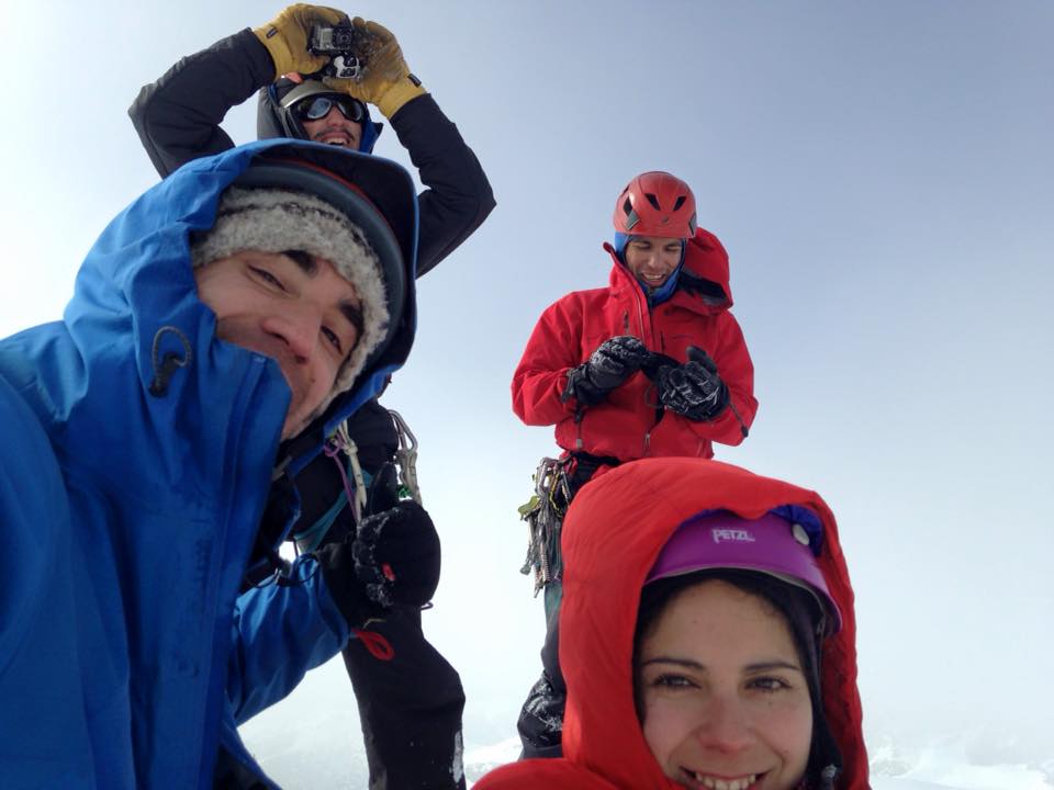 Leonardo Bastidas, Osiel Aqueveque, Grace Olave y Alvaro Quilodran en la primera invernal al cerro Pantojo 1 septiembre 2015! Primer ascenso invernal 1 septiembre 2015! Lindo cerro, en 2 días aproximando desde el camino internacional en randonee, cumbre/chile.