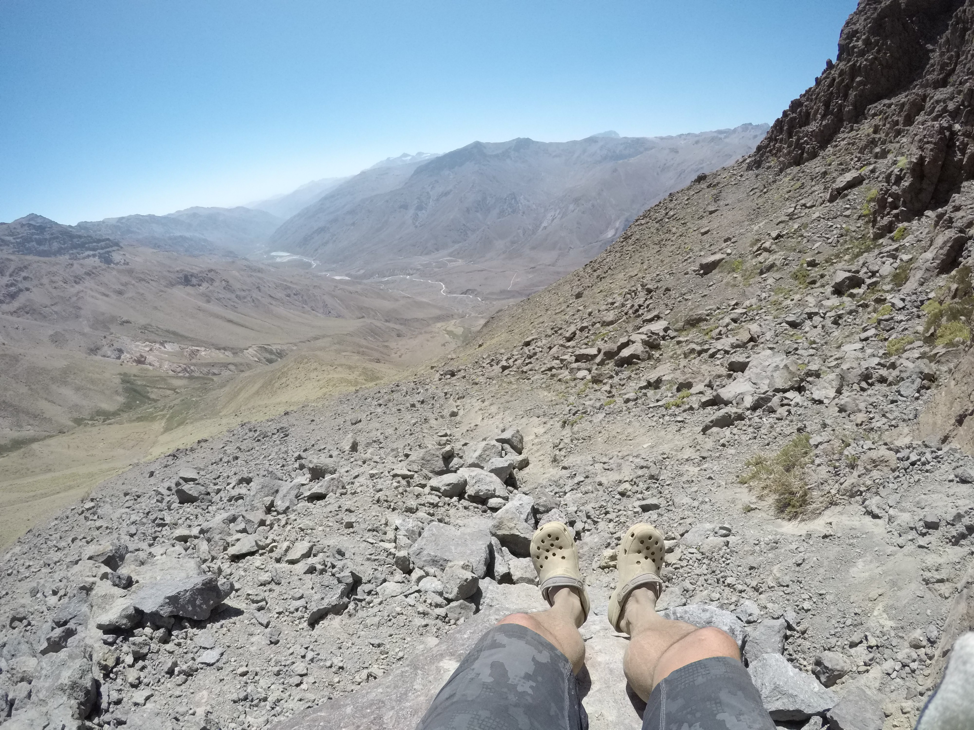 Subimos a las 6 de la mañana por la ruta normal , clima perfecto considerando lo inestable del clima por estos dias , ruta con nieve despues de remontar segundo cerro iniciando el acarreo , que hoy por la cantidad de nieve es una rampa empinada , esta cruzada por una avalancha bastante extensa , este cruce estaba un tanto duro , por lo que cramponeamos un rato , la cumbre estaba sin nieve y ventosa , una hora en la cumbre y bajamos por cara este , que nos presentaba tambièn rampas de nieve un poco mas blanda que nos hizo bajar mas enterrados , una vez en las termas ( cerradas por la fecha) bajamos a san fdo . Tiempos de subida 7 horas , tiempos de bajada 4 horas.