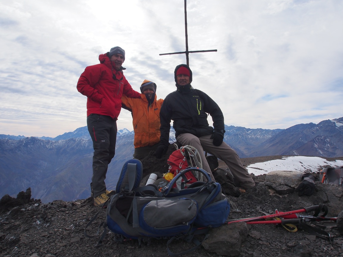 Subimos a las 6 de la mañana por la ruta normal , clima perfecto considerando lo inestable del clima por estos dias , ruta con nieve despues de remontar segundo cerro iniciando el acarreo , que hoy por la cantidad de nieve es una rampa empinada , esta cruzada por una avalancha bastante extensa , este cruce estaba un tanto duro , por lo que cramponeamos un rato , la cumbre estaba sin nieve y ventosa , una hora en la cumbre y bajamos por cara este , que nos presentaba tambièn rampas de nieve un poco mas blanda que nos hizo bajar mas enterrados , una vez en las termas ( cerradas por la fecha) bajamos a san fdo . Tiempos de subida 7 horas , tiempos de bajada 4 horas.