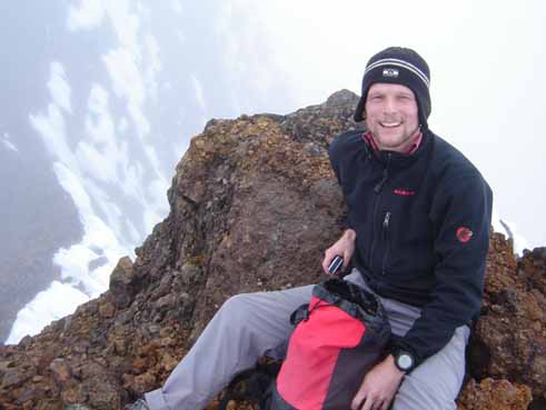 Despues de la expuesta escalada a la cumbre feliz de estar en ella. Una cuerda para bajar no seria mal ya que hay un anillo para el rapel en la cumbre.