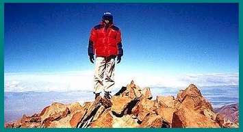 Cumbre del Cerro Pirámide en Cordón de la Totora, cordillera de los Andes, Provincia de San Juan, República Argentina. Fotografía tomada con cámara de rollo fotográfico de revelado en papel, el 15 de octubre de 1998 aprox a las 14 hs. En esa expedición realizamos el 1er ascenso al cerro luego de una aproximación de 3 jornadas. El ascenso final lo efectuamos ascendiendo al filo noroeste desde un campamento que instalamos a 4300 mts y lo recorrimos para alcanzar la cumbre. En el descenso lo hicimos por el fondo de la quebrada y debimos sortear allí si algunos neveros con suma precaución. Regresamos al campamento alrededor de 20 hs.