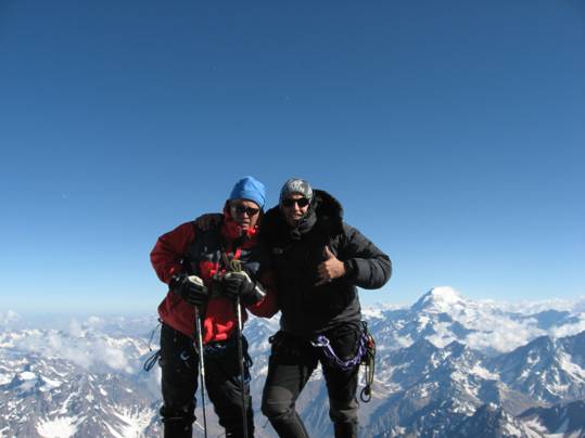Hay un ascenso de esta cara por la Expedición Valenciana del '72, y un ascenso por el filo este de una expedición japonesa más antigua. Se ven las cumbres chilena y central.