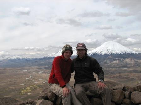 Al fondo los Payachatas. En uas 3 a 4 horas desde Parinacota llegamos a la cumbre, donde disfrutamos de unas vistas increíbles y comenzamos la aclimatación.