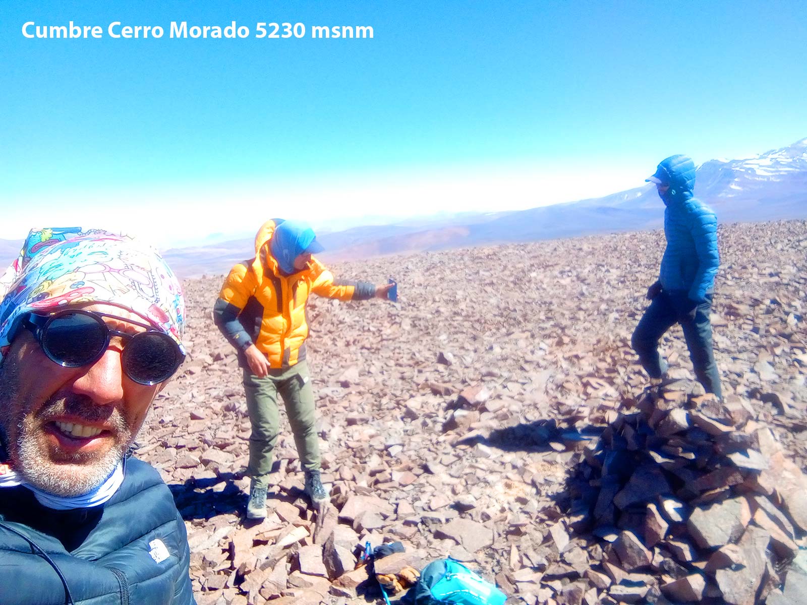 Muy lindas vistas de la cumbre del Veladero, Bonete Chico y el Pissis mas lejos Cumbre Cerro Morado 5230 msnm Junto a los andinistas Jorge Nome y Exequiel Gonzalez Muy lindas vistas de la cumbre del Veladero, Bonete Chico y el Pissis mas lejos. Lo hicimos como aclimatación.