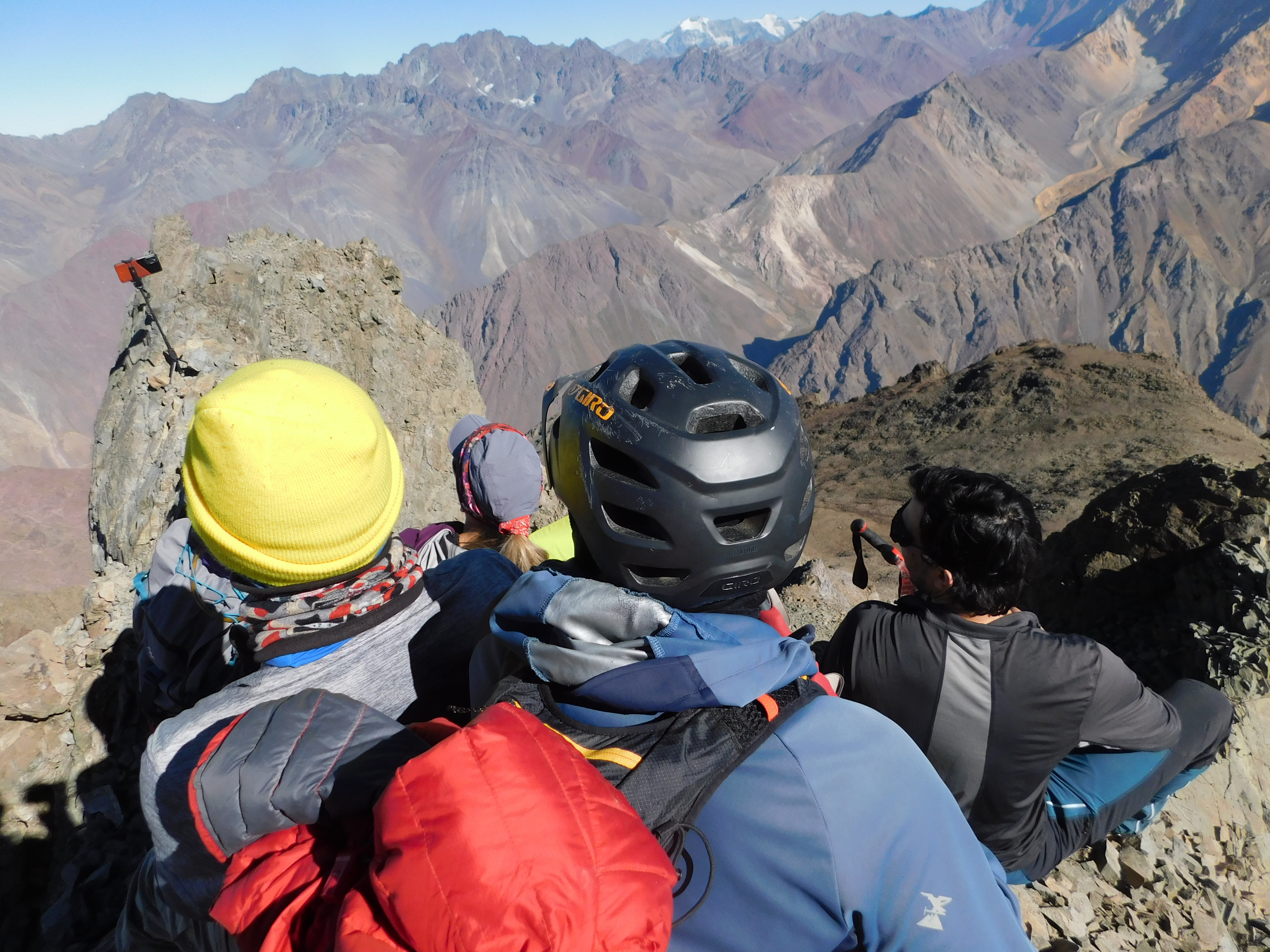Subiendo por un acarreo infinito desde los Baños Azules, logramos encontrar a 3400m un lugar donde vivaquear. Quedamos todos separados y algunos incluso tuvieron que dormir en una cueva. Al otro día seguimos subiendo por el acarreo hasta lelgar al filo. Desde ahí la ruta a la cumbre se facilitó mucho. La cumbre resultó ser un filo de roca descompuesta donde había que pedir permiso para respirar para que no se cayera todo.
