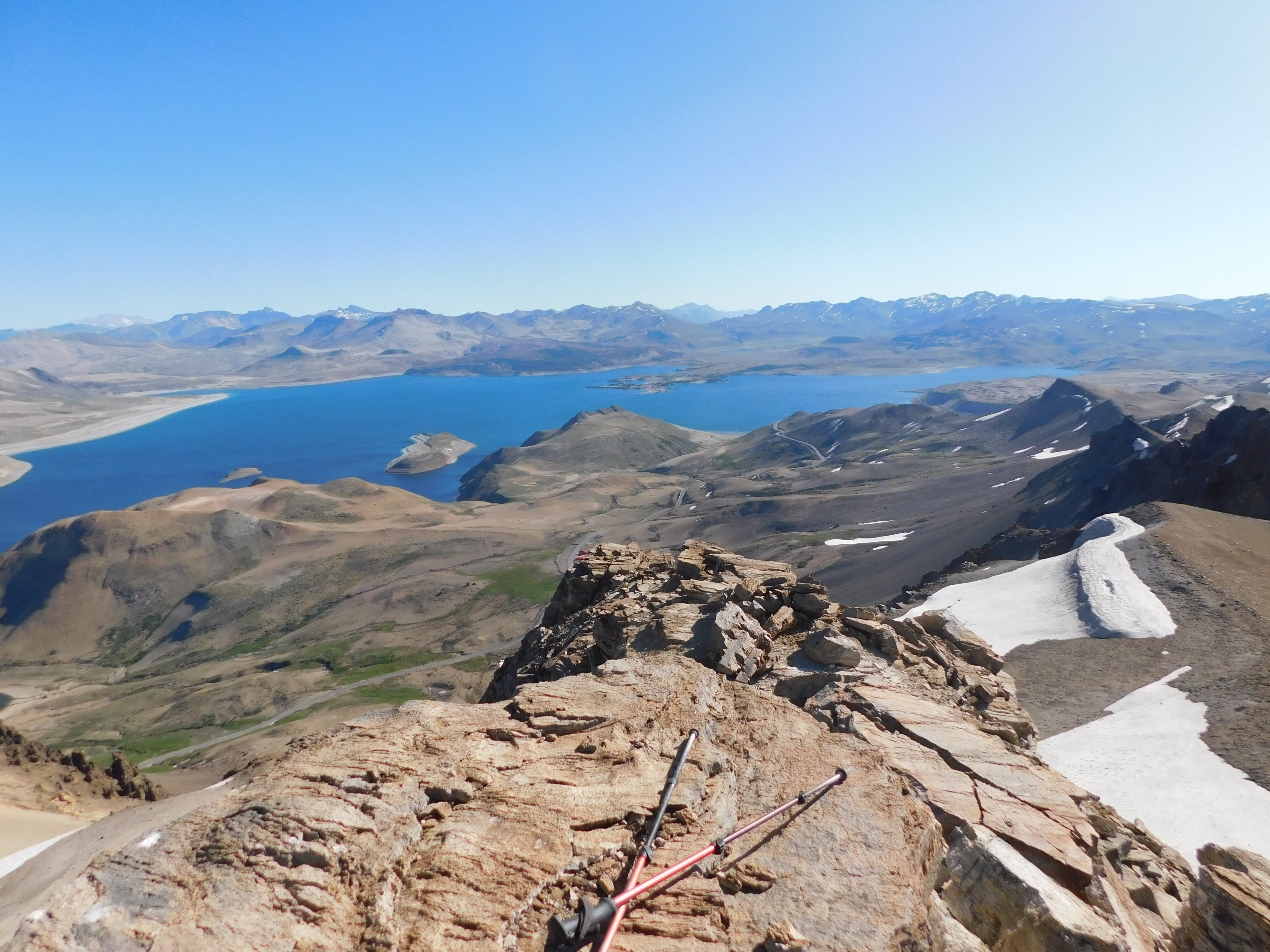Llegamos a acampar al Potrero Norte dando la vuelta a la laguna del Maule por lo que aproveché el tiempo que me quedaba y partí a subir este cerro. Llegué a la cumbre en poco menos de 2h. Tuve dudas acerca de cuál de las puntas rocosas era la cumbre y el GPS me marcó apenas 1m de diferencia entre ellas. La primera no se veía fácil de subir, pero se podía pasar por dentro de una grieta. La segunda tenía una vista increíble hacia la laguna del Maule. En esta segunda cumbre encontré vestigios de un ascenso anterior.