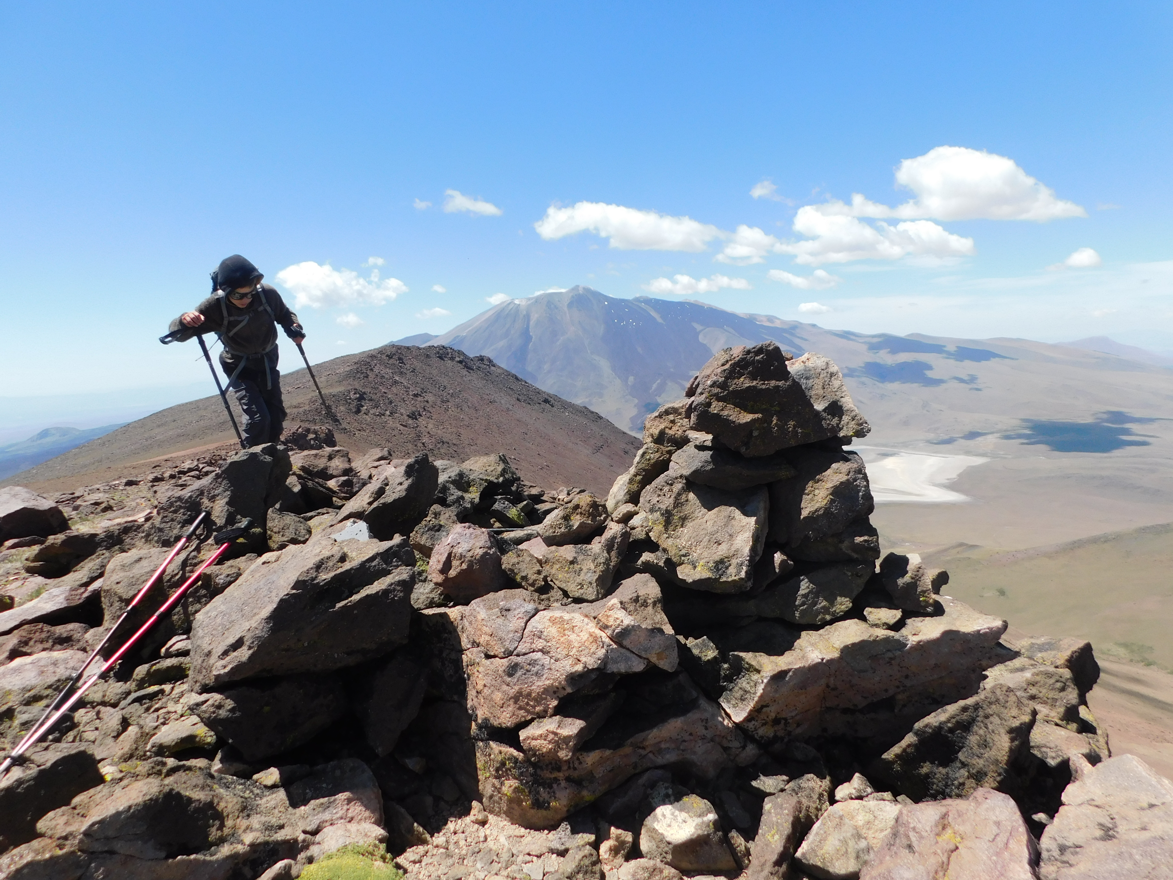 Salimos de Chos Malal hacia la reserva del Tromen y cuando llegamos nos llevamos una gran sorpresa al ver la laguna casi seca. Fuimos al refugio de los guardaparques y no encontramos a nadie, así que subimos sin registrarnos. Ascendimos siguiendo la huella de las pistas de ski y luego por el filo. Pasamos por la cumbre Oeste y nos pareció que la Este podía ser más alta, así que subimos a esta también. Desde ahí bajamos por el filo Este completando una vuelta completa por el cerro. Muy buenas vistas hacia los volcanes Tromen y Domuyo a pesar de lo seco que está todo.