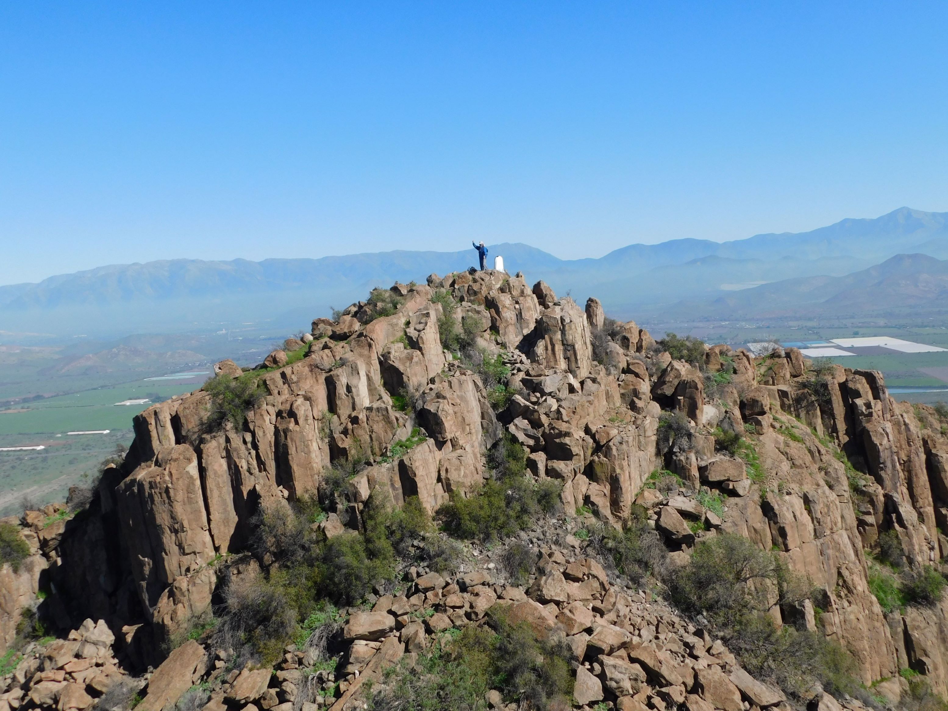 Experiencia bastante especial. Partimos buscando sin saber por donde acceder al cerro hasta que encontramos abierto el portón del camino que lleva hasta su base. Había un encuentro de motociclistas bastante grande por lo que a ratos había un ruido infernal. Cuando empezamos a subir nos dimos cuenta que al otro lado de la quebrada hay dos clubes de tiro por lo que se sube al cerro escuchando disparos todo el rato. A pesar de eso, el cerro es como una isla que estaba verde, lleno de vegetación y con muchas aves dando vueltas. Para llegar a la cumbre hay que pasar por un interesante sector de rocas. Su posición privilegiada permite que se tengan grandes vistas desde la cumbre. Entre otras cosas, se veía con claridad el tranque de relave Tórtolas. El cerro está en medio de una zona muy amenazada que se debe proteger.