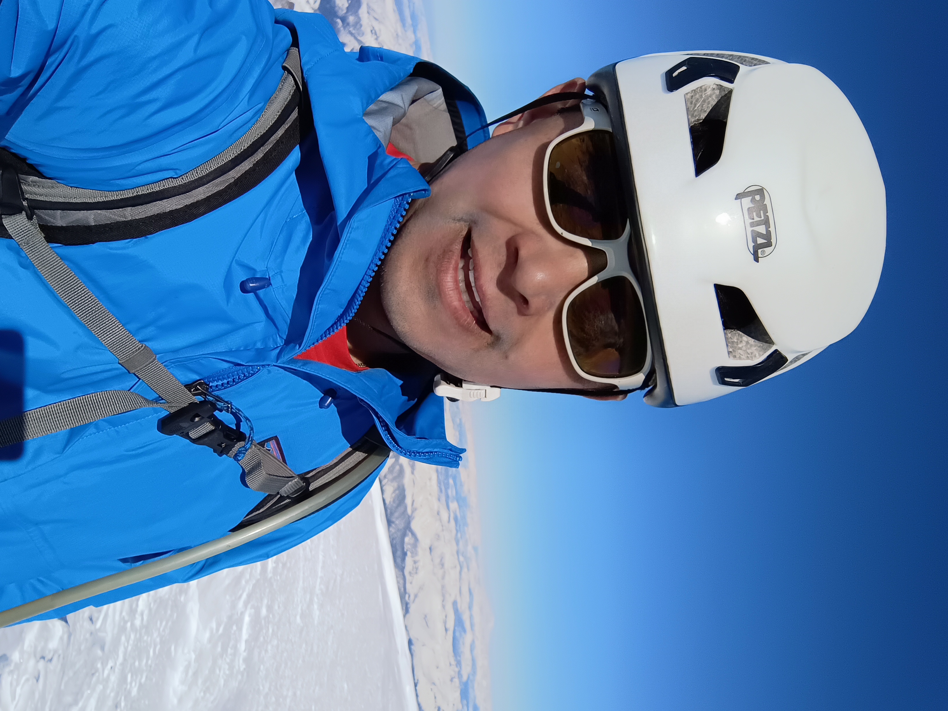 Con Arvin Trafian En una jornada por Chile con acarreo durísimo, poca nieve sobre los 2300, hasta la canaleta la mayor parte es acarreo, salimos a las 2 de la madrugada con nubes bajas y ráfagas de viento 45 km por hora aprox. Durante el día despejado y muy poco viento, vale la pena el esfuerzo