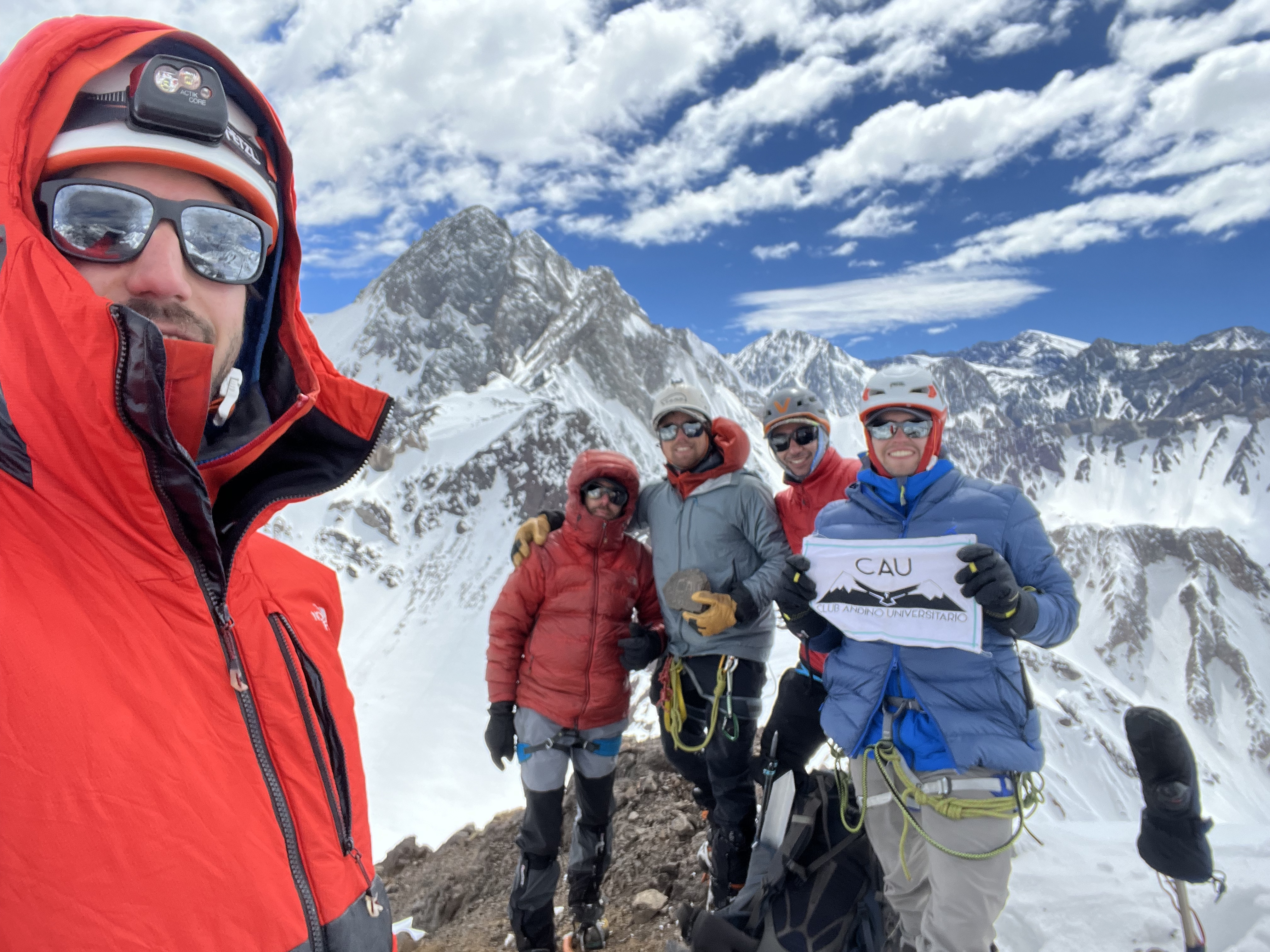 Gran mirador de la zona, desde el plomo, montañas del río Colorado, y San José. De fondo su vecino el Aparejo Ascenso por su cara suroeste hasta un pequeño portezuelo. La ruta se encontraba completa con nieve y no fue necesario usar cuerda ni estacas que llevamos.