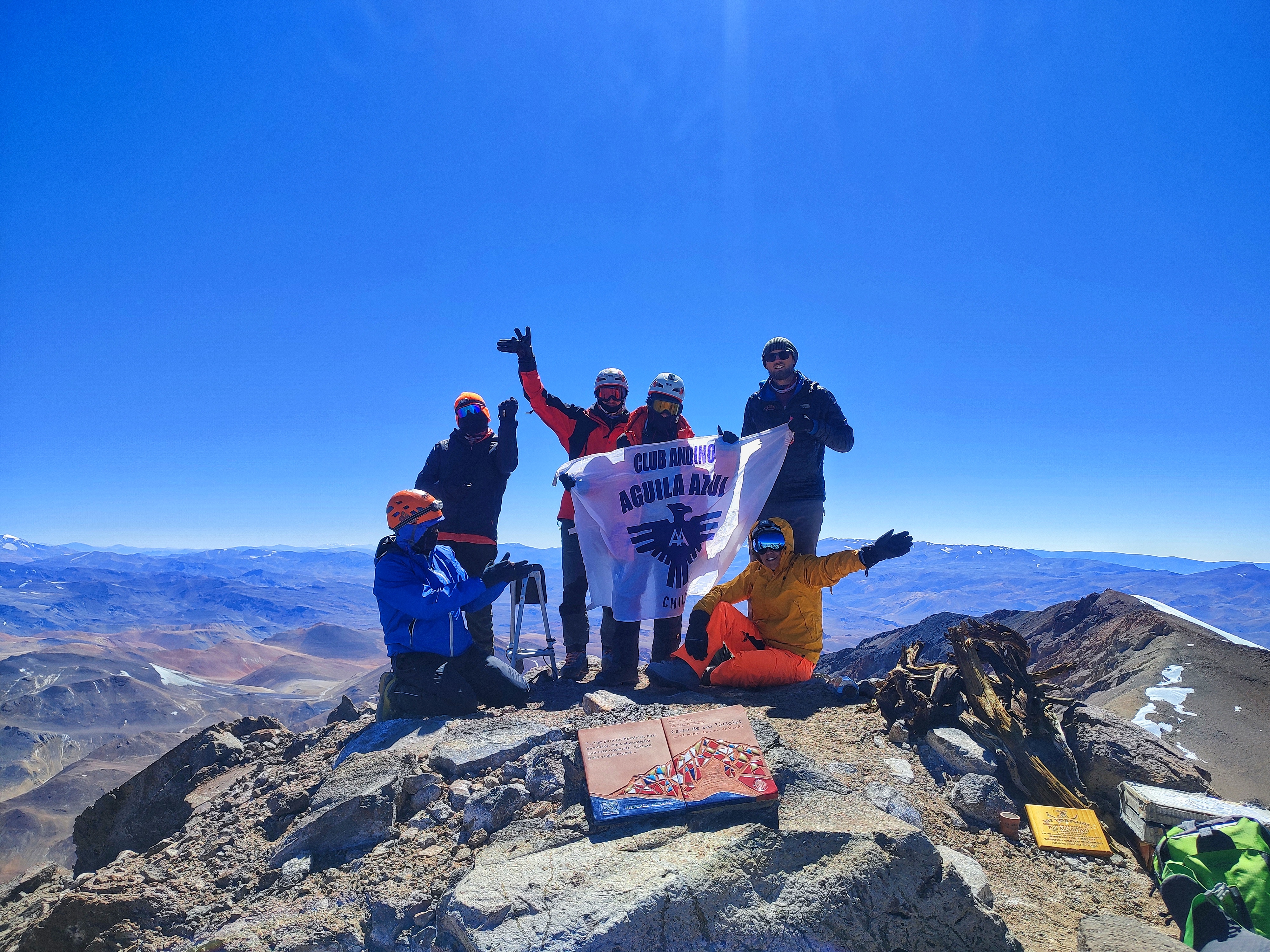 Todo esfuerzo tiene un sacrificio Mayo día 13 año 2023 Mi primer 6 mil. Este gran viaje lo iniciamos 4 días antes de hacer cumbre, no prepararme físicamente fue una de las causas de agotamiento, primer día en termas las hediondas camp 1, día 2 día sector escarchales tomamos nuestras mochilas porteando agua y alimentos desplazamientos al refugio Gabriela Mistral se hizo bastante duro el trayecto al llegar al refugio sobre los 5.200 no dormí casi nada vomité lo que comí en la noche, solo me hidrate en la mañana antes de salir, mis ganas eran infinitas pero en la noche dudé en mi mal estado (puna), mi compañero presentó los mismos síntomas. Eran las 8:45 en el refugio Gabriela Mistral y teníamos miedo de comer y vomitarlo, solo nos hidratamos bastante y salimos a las 10 de la mañana a tomar la cara norte