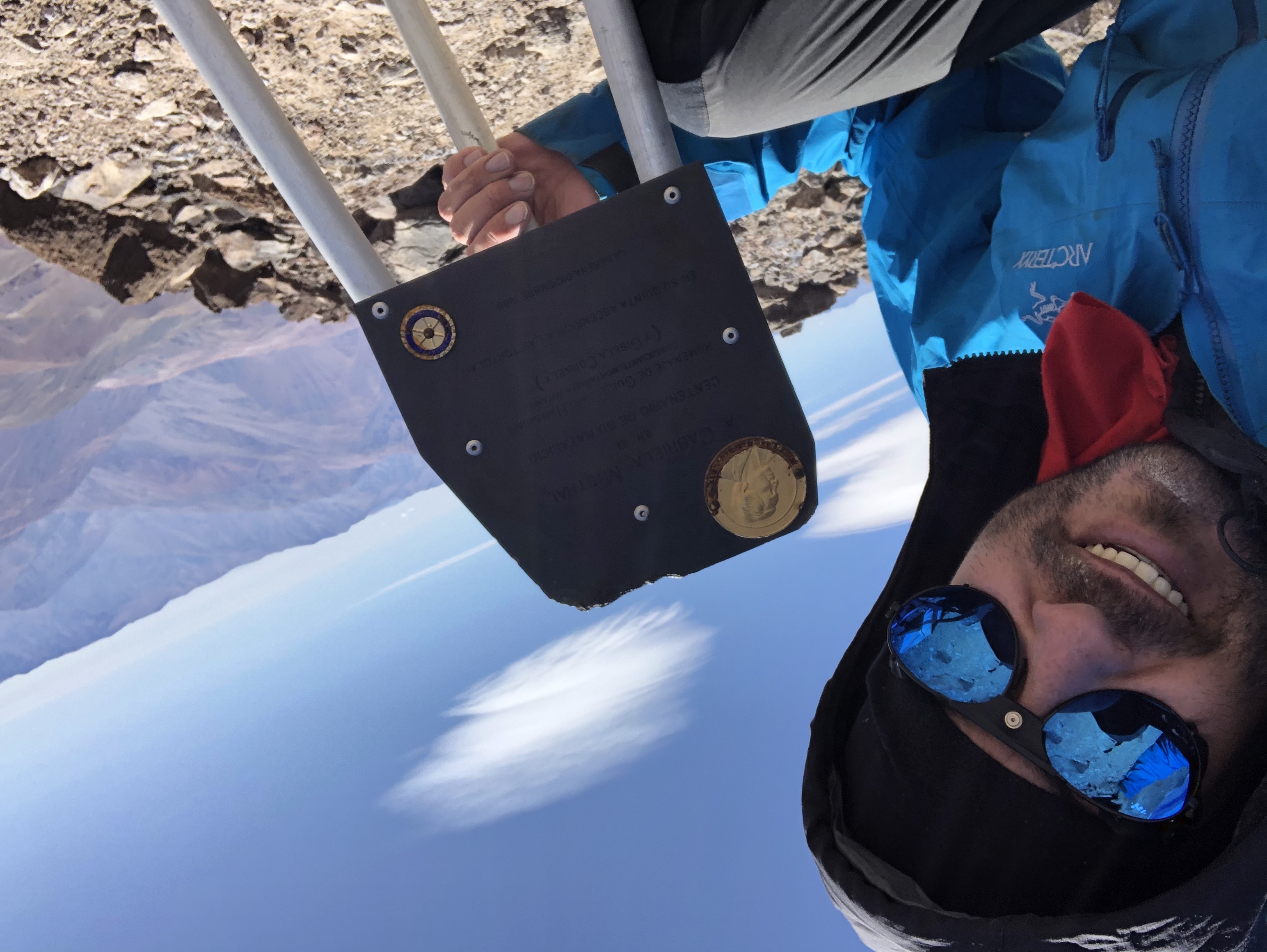 Todo esfuerzo tiene un sacrificio Mayo día 13 año 2023 Mi primer 6 mil. Este gran viaje lo iniciamos 4 días antes de hacer cumbre, no prepararme físicamente fue una de las causas de agotamiento, primer día en termas las hediondas camp 1, día 2 día sector escarchales tomamos nuestras mochilas porteando agua y alimentos desplazamientos al refugio Gabriela Mistral se hizo bastante duro el trayecto al llegar al refugio sobre los 5.200 no dormí casi nada vomité lo que comí en la noche, solo me hidrate en la mañana antes de salir, mis ganas eran infinitas pero en la noche dudé en mi mal estado (puna), mi compañero presentó los mismos síntomas. Eran las 8:45 en el refugio Gabriela Mistral y teníamos miedo de comer y vomitarlo, solo nos hidratamos bastante y salimos a las 10 de la mañana a tomar la cara norte