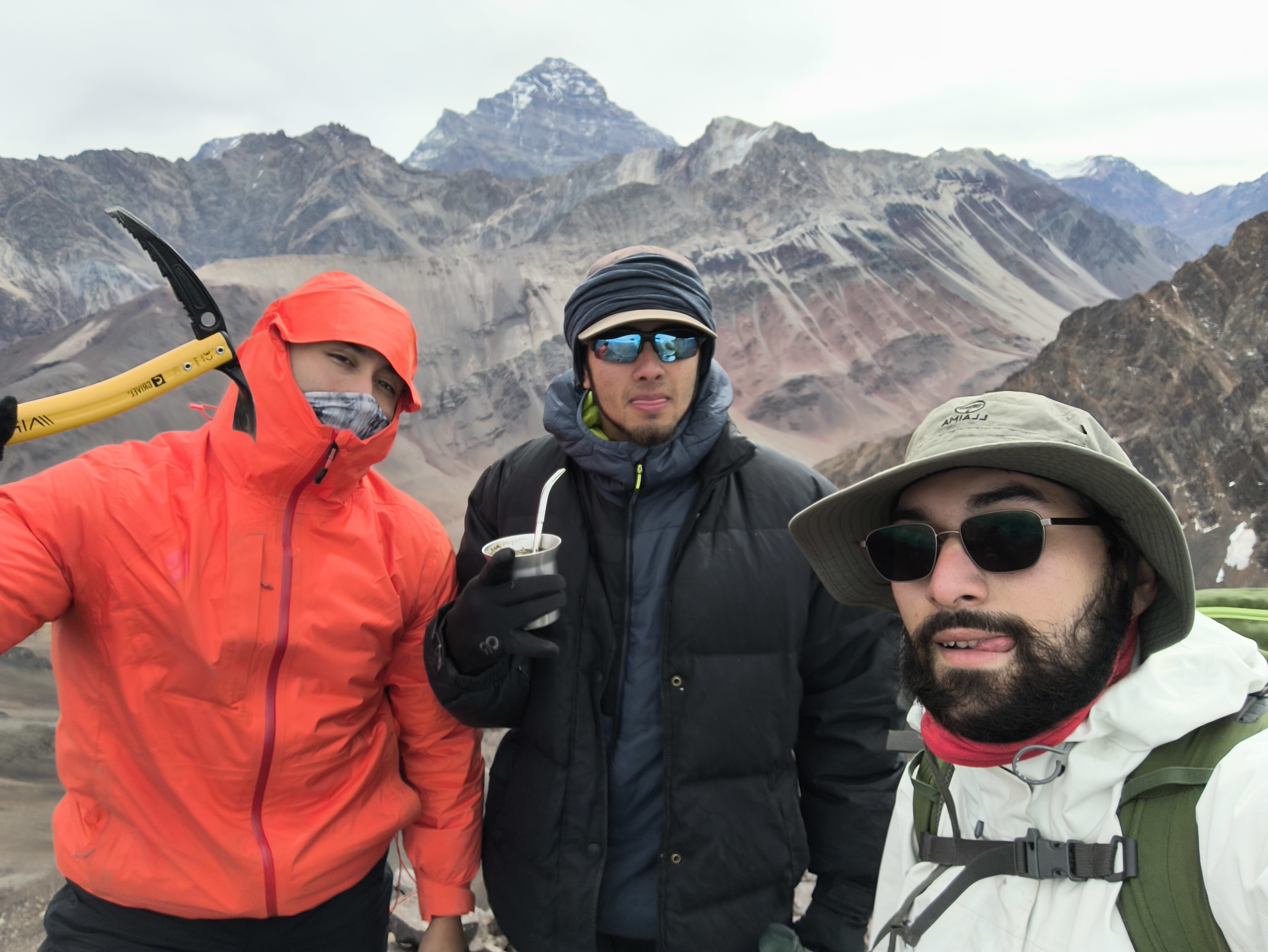 Como sugerencia, quedar lo más arriba posible del campo base, cuidando de no quedar expuestos a caída de rocas. Habíamos intentado anteriormente a comienzos de primavera. Pero la nieve acumulada hace más difícil el ascenso sin un piolet técnico. En esta ocasión aun había nieve que nos permitía zigzaguear y ganar altura fácilmente. En algunos momentos tuvimos que trepar más de algunas rocas para evitar el subir por el acarreo que está más a la izquierda del portezuelo entre el central y el sur. Bonita experiencia, buen grupo y un muy buen día para hacer cumbre. Dedicado a nuestras familias y amigos! CLUB DE MONTAÑA DE SANTA MARIA (Mauricio Lazo, Fabián Gallardo, Diego Arancibia, Sergio Torrejón, Ariel Saá *Paz Cañete, *Igor Armijo).