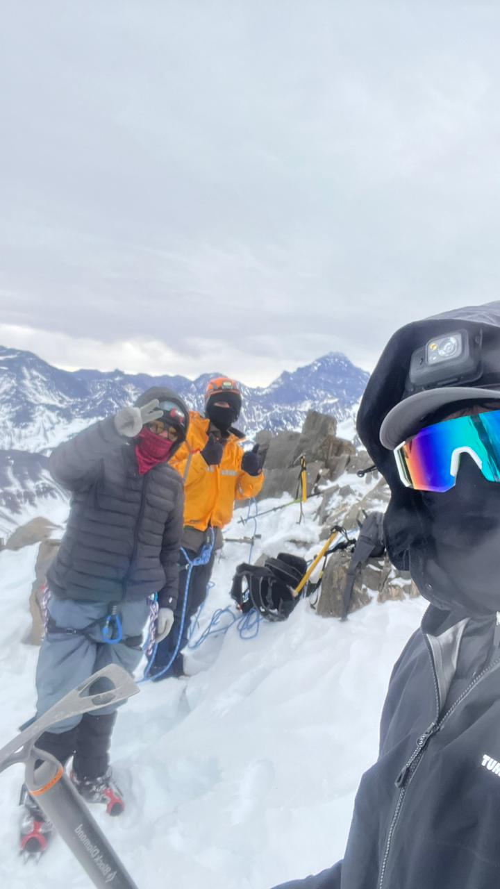 Cumbre un día con mucho viento y bajas temperaturas Primer día de jornada en C1 fuertes rachas de viento y nevasones a 3000 msnm ,2° día ascenso a C2 3680msnm, 3° día 2:30inicio marcha coronando cumbre alas 10:00hrs excelente ruta y una canaleta interminable.