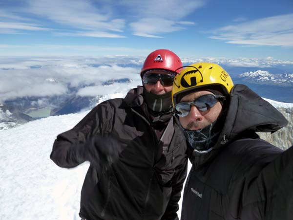 Cumbre a las 12:00 hrs. De bajada se nos metieron nubes que nos dejaron sin visibilidad por 2 horas. www.alturasur.blogspot.com Una montaña inolvidable, muy completa. Lo más duro, los 12 mts. de escalada del hongo cumbrero. Excelente grupo, el apoyo de Pedro en el C2 fue fundamental. "Mientras existan objetivos en la vida se vive, sino solo se sobrevive".