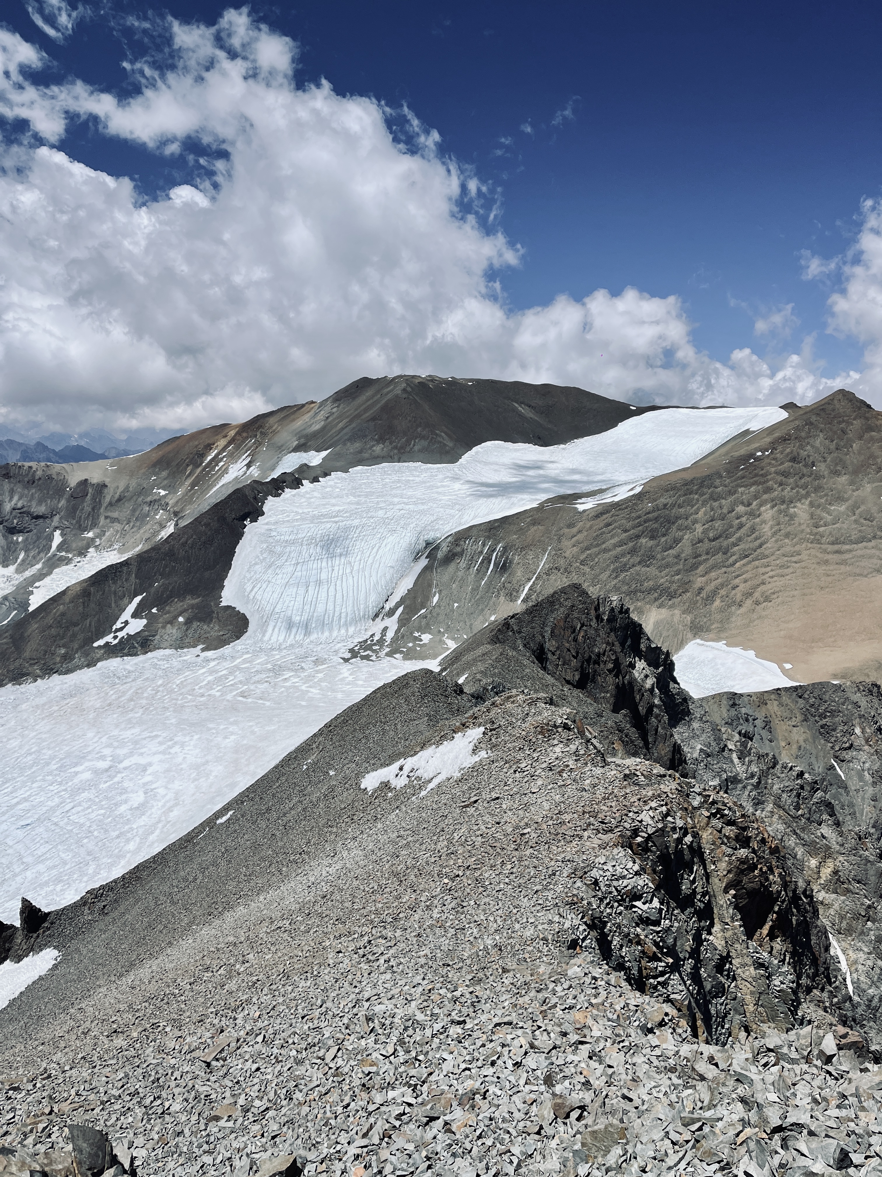 Inicié el ataque a cumbre desde Federación a las 4:42 am, pasando por el Parsifal y luego desde aquí directo hacia abajo por el camino sin glaciar/nieve, para luego volver a internarme en el segundo glaciar donde se podía apreciar el Littoria y el Fickenscher. Luego me monté por el filo este, piedra grande pero que caía con cada pisada, por lo que los últimos 600m a cumbre resultaron intensos pero con vistas preciosas. Finalmente llegué a la cumbre del Cerro Littoria en menos de 8hrs desde Federación, con -16 C en cumbre aprox. Muy buena jornada.