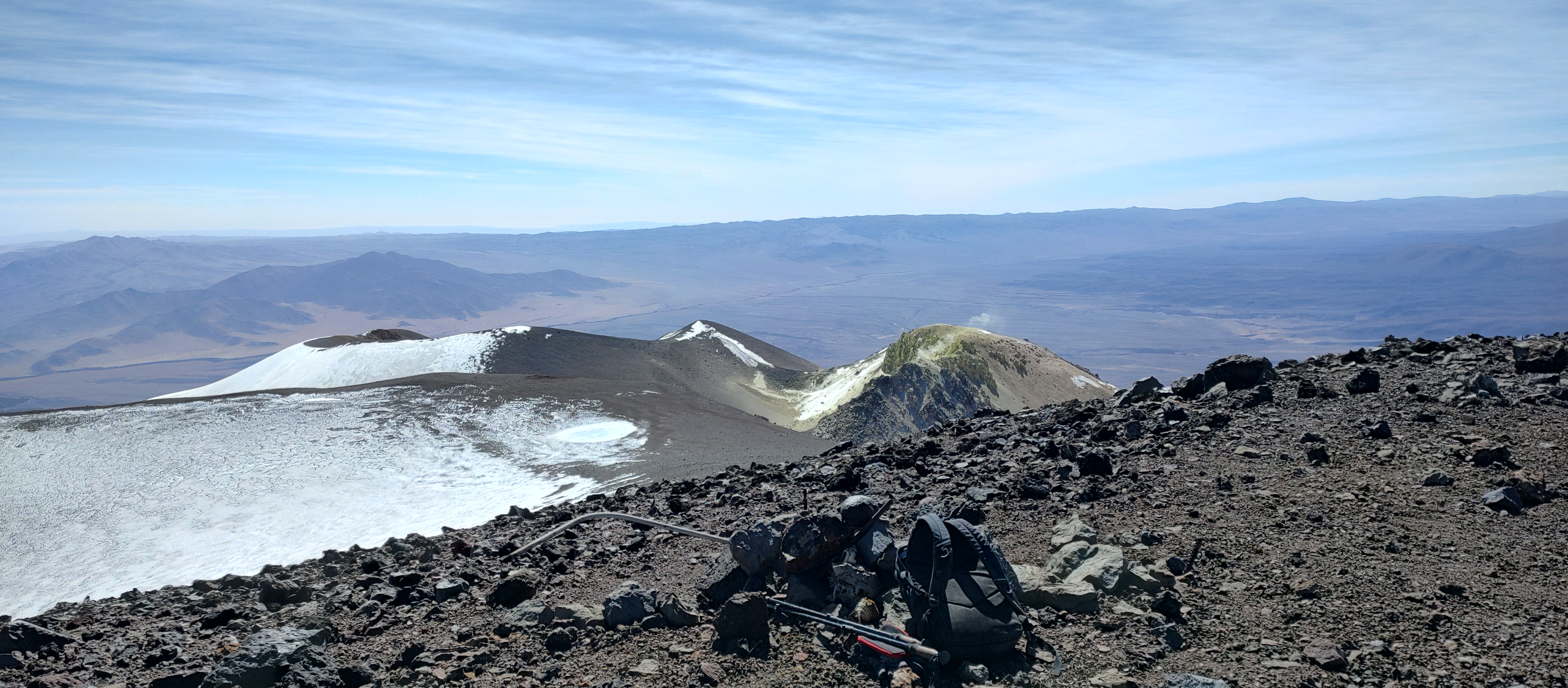 Cumbre Volcán San Pedro Ruta realizada desde el estacionamiento a 4.600 msnm por el día. Nada de nieve en el camino salvo unos manchones cerca del C2.