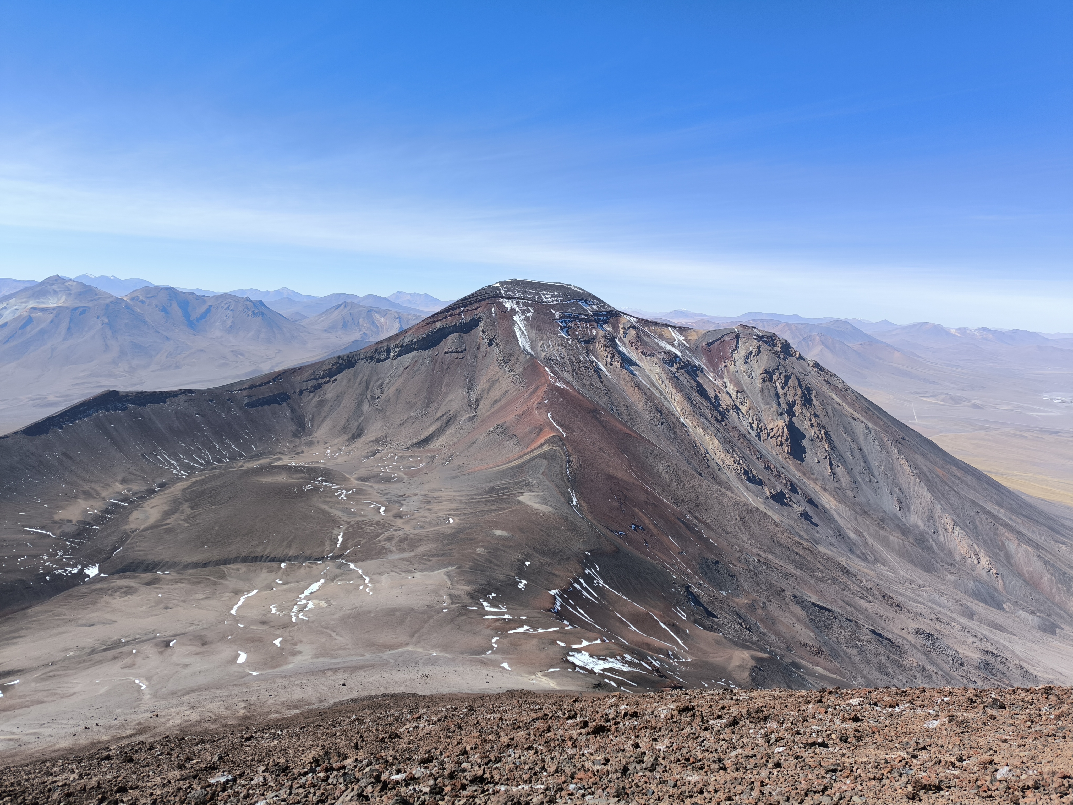 Cumbre Volcán San Pedro Ruta realizada desde el estacionamiento a 4.600 msnm por el día. Nada de nieve en el camino salvo unos manchones cerca del C2.