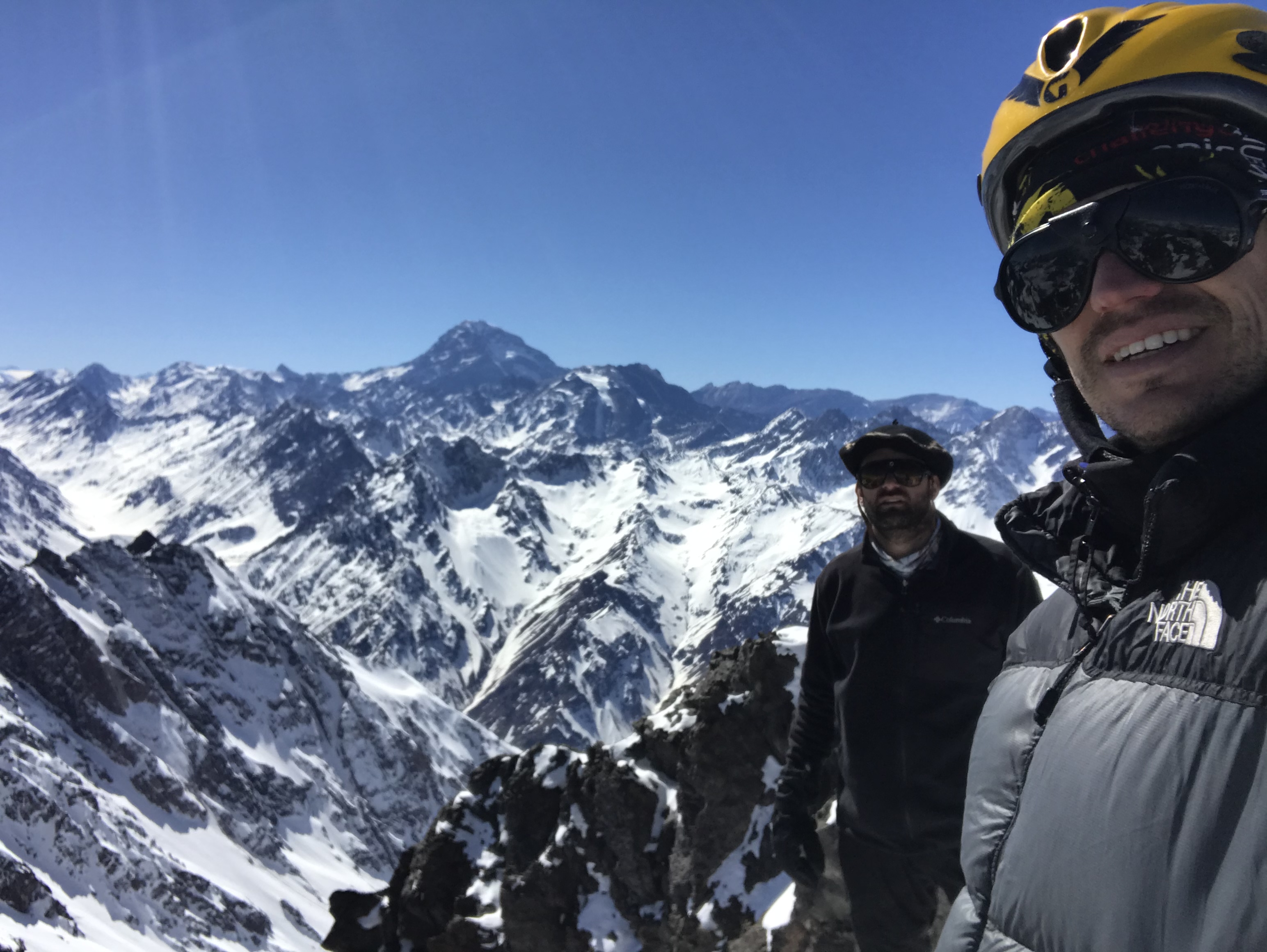 Cumbre perfecta con el majestuoso Aconcagua de telón de fondo Ascensión invernal (en skis de randoneé y raquetas) en condiciones inmejorables. El descenso esquiando hasta el CB...éxtasis.