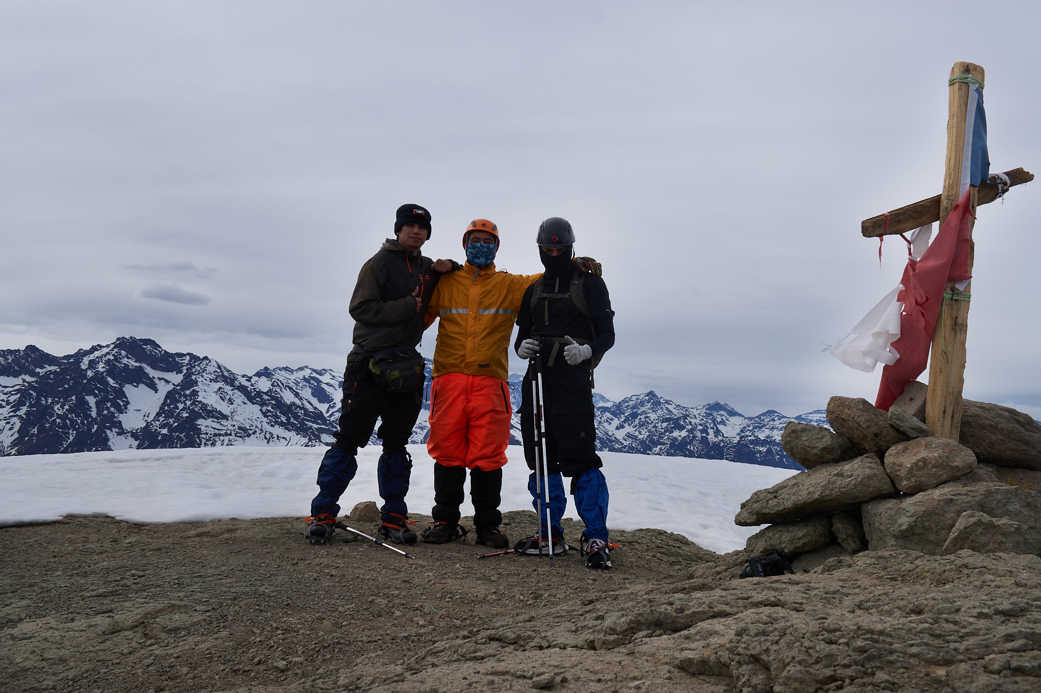 Grupo completo del ascenso Ruta realizada en una jornada de dos días, realizamos campamento base a los 2700 m. Con bastante nieve desde los 2600 m aprox. y buen clima. Necesario el uso de crampones. Se recomienda salir temprano desde el campamento base para atacar cumbre mientras la nieve este dura.