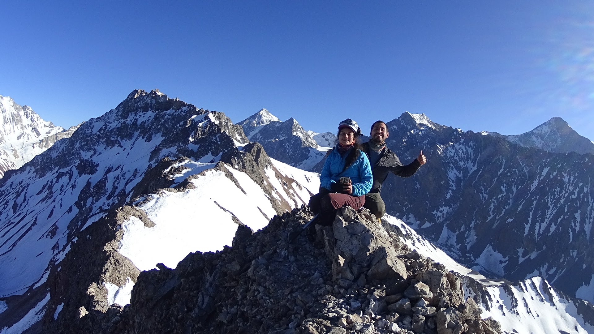 Ascensiones de Gastón y Cuerno Seco desde termas del plomo por el día. Ascenso por filo y descenso por cara