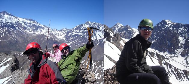 Ascensión del CAAH y miembros del equipo Andeshandbook. Salimos el sábado a las 8AM desde Santiago. Son 3hrs de auto aprox. hasta las Termas del Plomo. Día borrascoso, con chubascos de nieve y ocasionalmente ráfagas fuertes de viento. Hicimos el primer tramo del circuito de la Laguna los Patos . El día se mantuvo borrascoso y en la noche se despejó. Otras 3 personas alojaron en la laguna (2 hombres y una mujer); con la intención de subir el Gastón al día siguiente. En la laguna avistamos 4 patos salvajes y una pareja de Caiquenes. El día de cumbre estuvo con óptimas condiciones del tiempo: despejado, sin mucho viento. Las condiciones de la nieve estaban ideales tanto para la ascensión como descenso. Usamos los esquíes saliendo de la carpa (la nieve comienza desde la misma laguna). Salimos con luz, a las 6.50AM del campamento. A las 11.35AM hicimos cumbre. Tanto para los esquíes como para los crampones, la nieve estaba ideal y permite un ascenso rápido si es que se hace temprano. Por supuesto, acercándose al mediodía la nieve se pone más blanda. A nuestro descenso vimos 4 personas (2 hombres y 2 mujeres) ascendiendo por el día por la Cara Este en esquíes (ver firma de libro de cumbre del mismo día). Kronos Salida Laguna los Patos: 6.50AM Primer Lomo: 7.30AM Plateau Superior: 8.30AM Fin Filo y comienzo Gendarmes: 9.50AM Cumbre: 11.35AM Tiempo ascenso: 4h 45 mins. Para el descenso salimos a las 11.50AM desde la cumbre, tras sesión de fotos montados como en silla de montar sobre filo cumbrero de yeso (parecido por el color oscuro a chips de chocolate de algunas tortas). Almorzamos en la antecumbre (falsa cumbre del diente o cuerno que se avista desde los Patos), por casi una hora. A las 13.00hrs aprox. nos reencontramos con nuestros esquíes, que habíamos dejado al final de la arista que monta hasta los gendarmes de yeso (3 850m aprox.). A las 13.15hrs iniciamos el descenso en esquí, que duró 30 minutos hasta la laguna (13.45hrs). Esto implica un TDA de 16,7% (30min/180min; salida muy rápida). Para el descenso a las Termas del Plomo completamos el circuito de la Laguna de los Patos, al descender por el sendero que desciende en sentido suroeste desde la laguna. Este tramo nos tomó 45 minutos. El cerro es perfectamente ascendible en una jornada desde Santiago o desde las Termas, como lo hicieron los 4 montañistas que subieron por la Cara Este. Para más detalles del ascenso/descenso ver track.