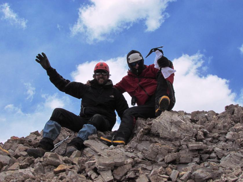 Excelente día, nieve dura en el canalón nos permitio subir con crampones hasta la base del torreon cumbrero. Bajada por la ruta normal para completar el circuito y terminar en las piscinas termales