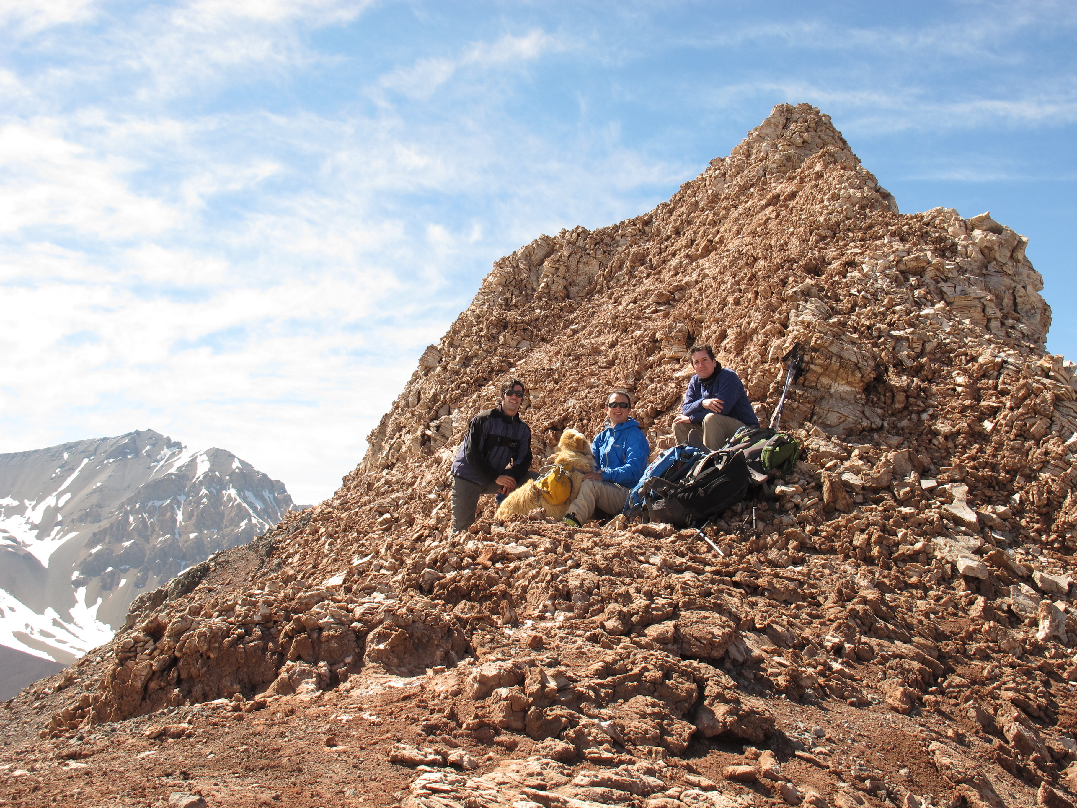 Linda ascensión al Gastón. Nos demoramos 1h desde las termas del Plomo a la laguna y 2h desde la laguna a la cumbre. Ruta relativamente seca con algunos manchones de nieve. Marcelo después del Gastón subió hacia el Cuerno Seco y bajo en esquíes conectando neveros hasta la laguna. Nos acompaño Kimba hasta el torreón cumbrero.