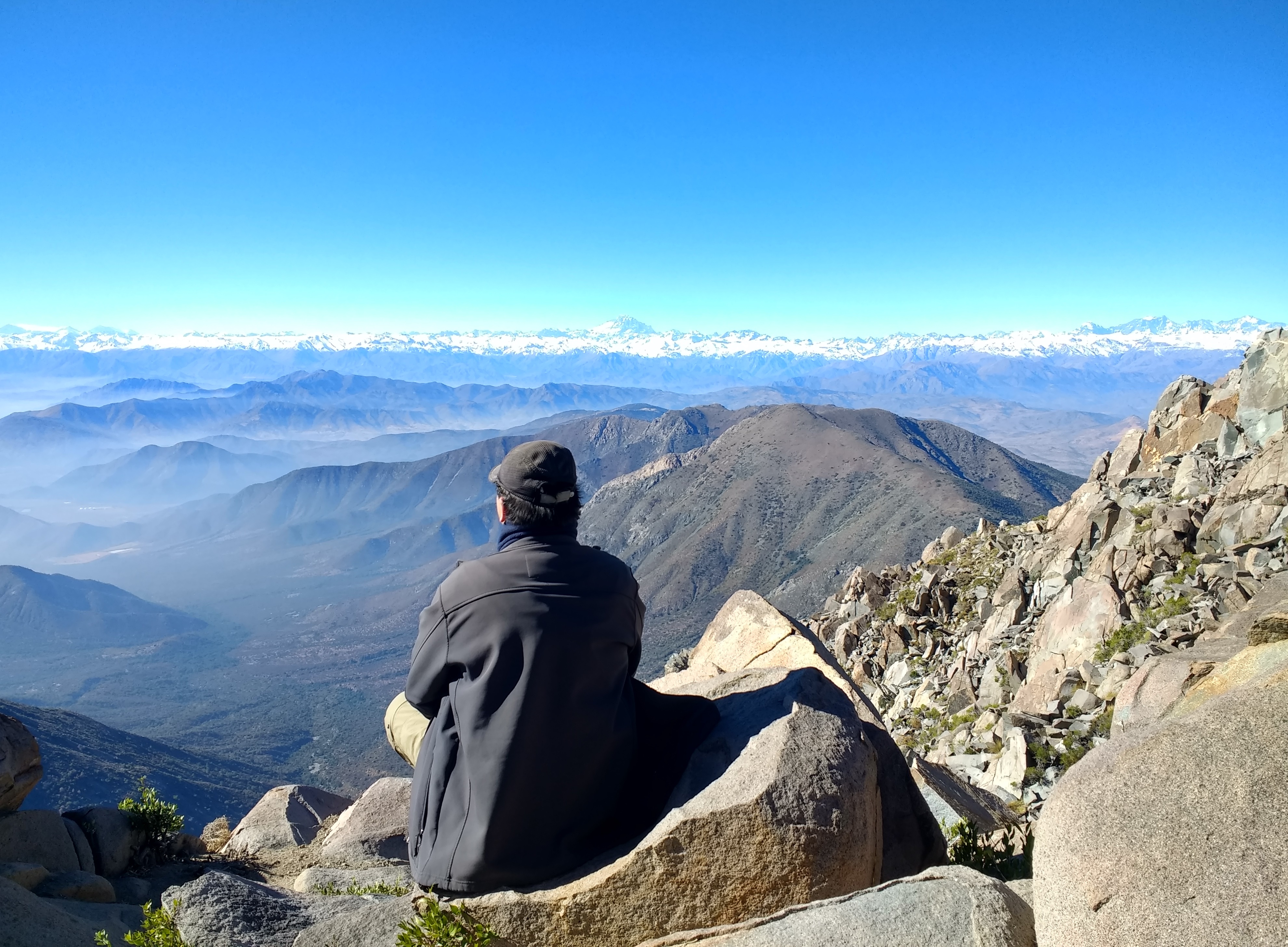 En la cima, mirando hacia el valle de Aconcagua Muy lindo el santuario, con gran vista desde el camino y desde la cumbre y espectaculares los robles con sus hojas rojas. Lástima que esté cerrado ahora