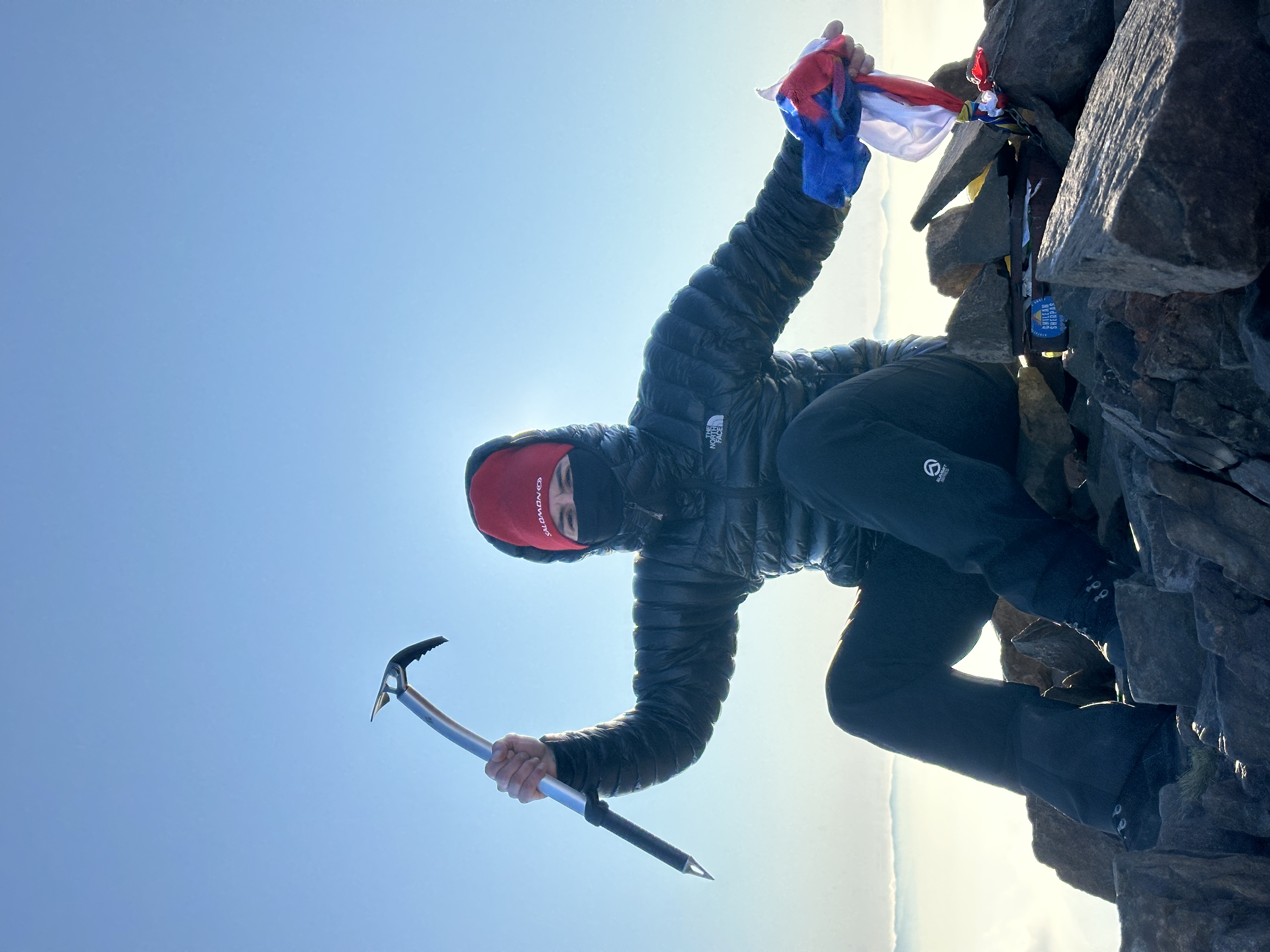 Foto del Cerro Carpa desde la cumbre del Cerro Conchalí. Desde el hito del accidente aéreo la ruta con mucha nieve, hasta la rodilla en algunos tramos. En las cumbres, un viento que te conversaba.