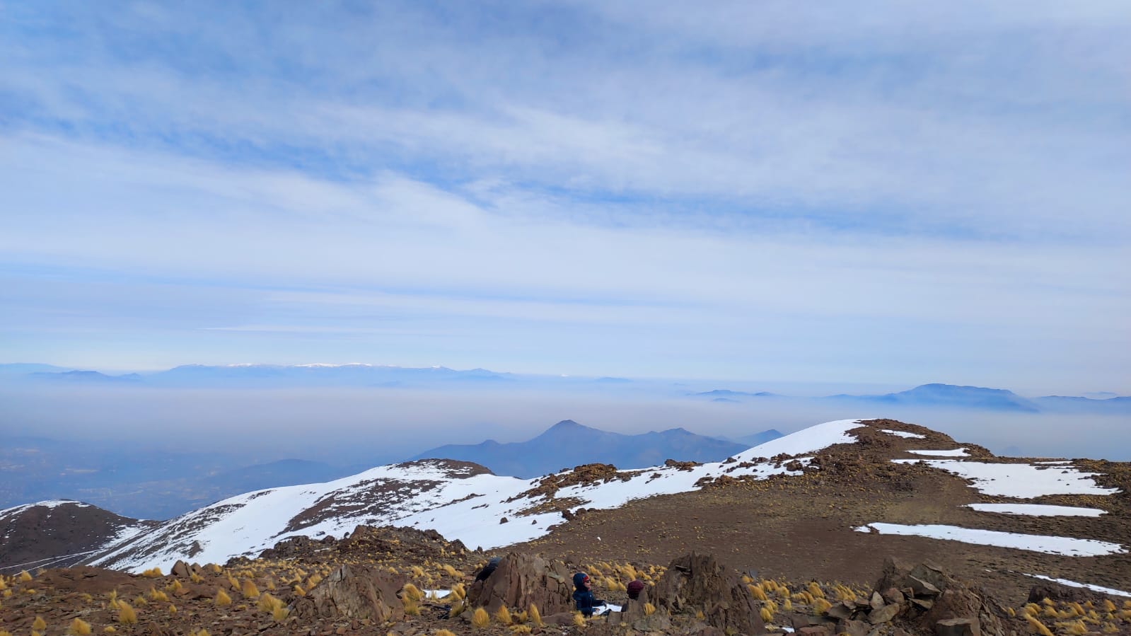 Foto del Cerro Carpa desde la cumbre del Cerro Conchalí. Desde el hito del accidente aéreo la ruta con mucha nieve, hasta la rodilla en algunos tramos. En las cumbres, un viento que te conversaba.