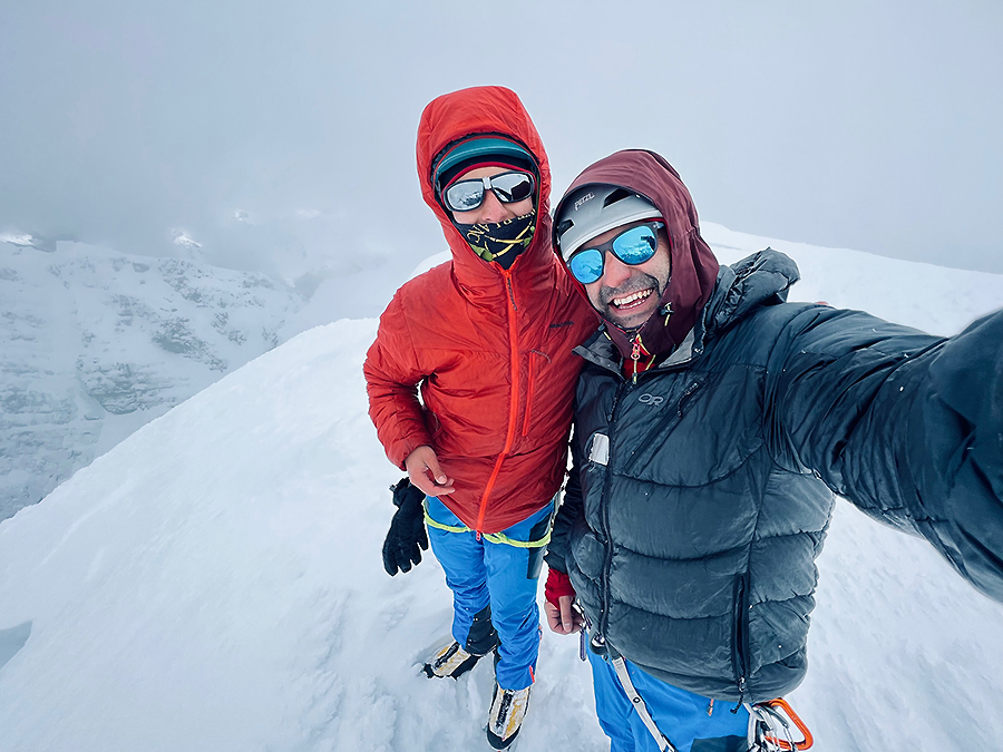 Poca visibilidad, algo de viento y frío intenso...pero felices. Tuvieron que pasar 13 años para volver a esta montaña. Con el invierno en su máxima expresión, abrimos la ruta "Diagonal Sur". Hermosa cordillera.
