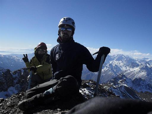 Después de aguantar una tormenta de nieve, nos tocó un día despejado para hacer cumbre. Desde la morrena subimos por el filo oeste del cerro. Segundo ascenso absoluto al Azufre y primeros brasileños en la cumbre!