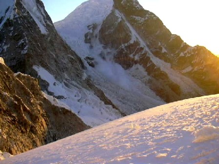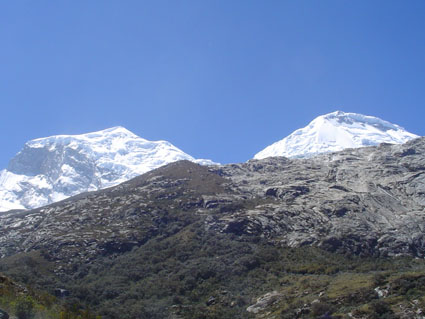 Puesta de sol sobre el Huascaran desde el pueblo de Yungay