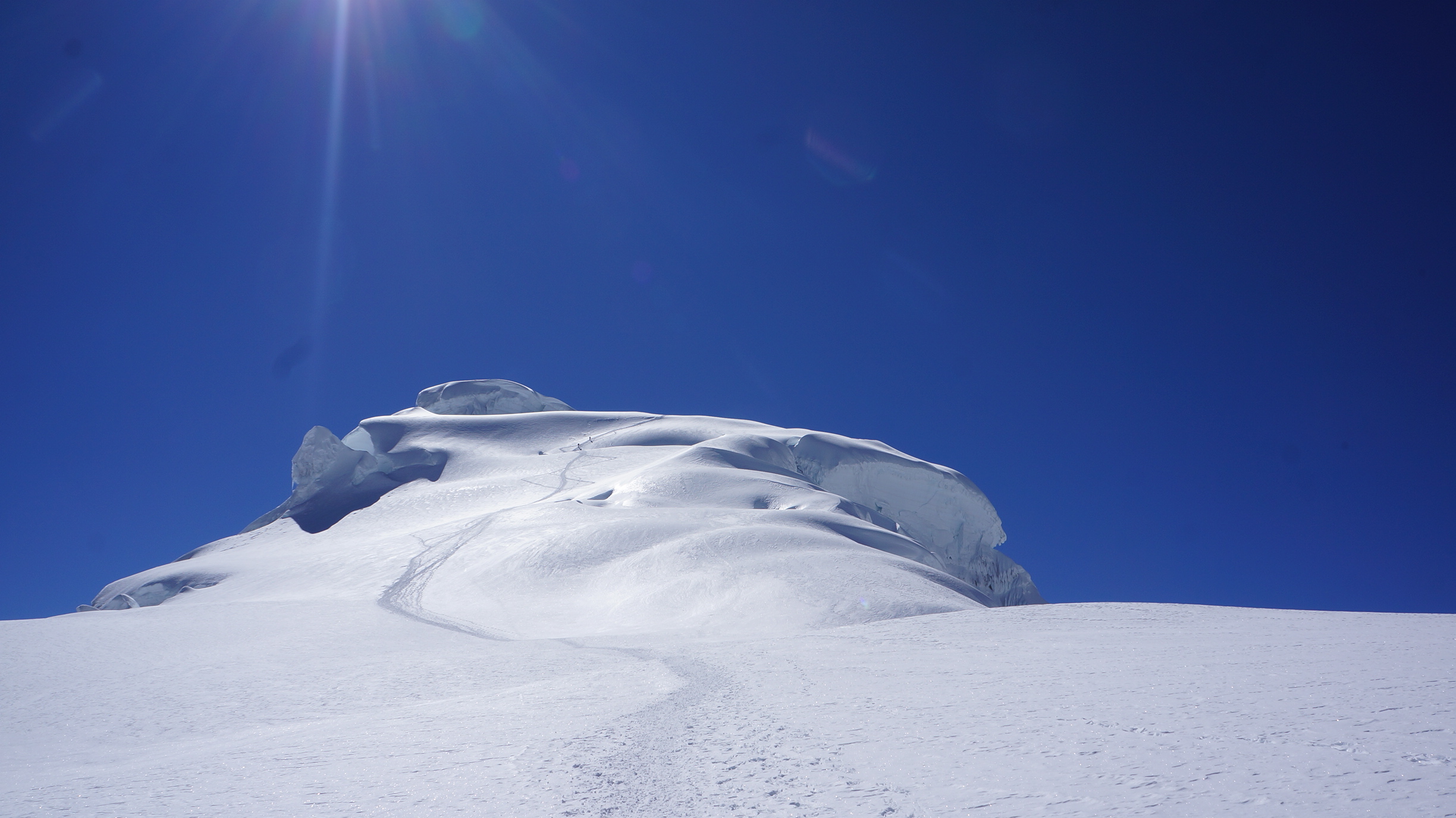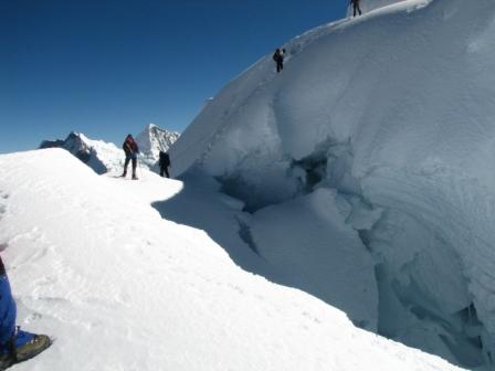 Día despejado con muy poco frío. La ruta estaba en muy buenas condiciones, salimos del refugio Perú a las 2:15 AM y estábamos en la cumbre a las 10:30 AM. El regreso fue calmado y el cruce de la morrena se hizo eterno, llegamos como a las 15:30 de vuelta al refugio.