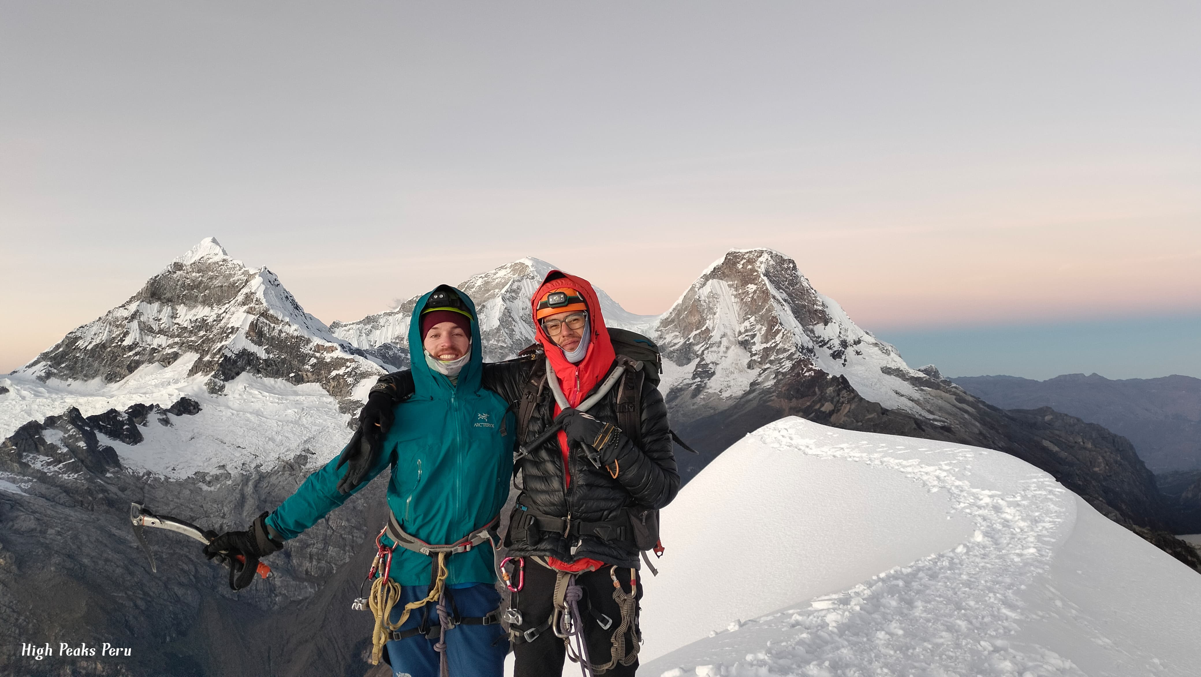 La expedición se gestiono en dos días en la primer semana de agosto. Clima estupendo en el ascenso. En el primer día se hizo aproximación a campamento base a la orilla de la laguna; el trekking toma unas 3 hrs aprox. Partimos el siguiente día por la madrugada 2am aprox para ataque a cumbre. Se llega a una pequeña pared de hielo sólido de unos 5mts. Se continúa con progresión en glaciar. Presencia de grietas transversales. Se continúa hasta llegar a una pared inclinada (50 a 60° en su parte final) de unos 150 mts. Empleamos 2 cuerdas de 70 mts y estacas de nieve. Terminada la escalada de esta pared se llega a cornisa de hielo en el filo de la montaña. Se continúa hacia la cumbre visible con una inclinación de unos 50 grados. En el descenso empleamos rapel. Tiempo aprox de ascenso 5 hrs. Descenso 3 hrs.
